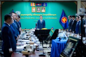 ទីស្តីការក្រសួង៖ ព្រឹកថ្ងៃទី១ ខែកក្កដា ឆ្នាំ២០២១ ឯកឧត្តម វង សូត រដ្ឋមន្ត្រី និងថ្នាក់ដឹកនាំពាក់ព័ន្ធ នៃក្រសួងសង្គមកិច្ច អតីតយុទ្ធជន និងយុវនីតិសម្បទា អញ្ចេីញចូលរួមកិច្ចប្រជុំគណ:កម្មការជាតិប្រយុទ្ធនឹងជំងឺកូវីដ-១៩ តាមប្រព័ន្ធអនឡាញ ក្រោមអធិបតីភាពដ៏ខ្ពង់ខ្ពស់សម្តេចអគ្គមហាសេនាបតីតេជោ ហ៊ុន សែន នាយករដ្ឋមន្រ្តីនៃព្រះរាជាណាចក្រកម្ពុជា និងជាប្រធានគណ:កម្មការជាតិប្រយុទ្ធនឹងជំងឺកូវីដ-១៩ នៅទីស្តីការក្រសួងក្រសួងសង្គមកិច្ច អតីតយុទ្ធ ជន និងយុវនីតិសម្បទា។