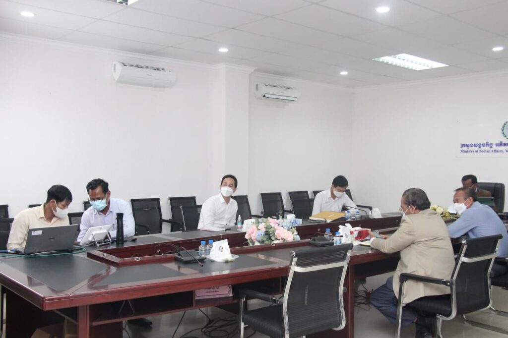 នារសៀលទី០៦ ខែកញ្ញា ឆ្នាំ២០២១ ឯកឧត្តម វង សូត រដ្ឋមន្ត្រីនិងថ្នាក់ដឹកនាំពាក់ព័ន្ធនៃក្រសួងសង្គមកិច្ច អតីតយុទ្ធជន និងយុវនីតិសម្បទា អញ្ចេីញចូលរួមកិច្ចប្រជុំគណៈប្រចាំការនៃគណ:កម្មការជាតិប្រយុទ្ធនឹងជំងឺកូវីដ-១៩ ដើម្បីពិនិត្យ ពិភាក្សាលើសេចក្តីព្រាងផែនការសកម្មភាពស្តីពីការចាក់វ៉ាក់សាំងការពារជំងឺកូវីដ១៩ ដូសជម្រុញ ក្រោមអធិបតីភាព ឯកឧត្តមអគ្គបណ្ឌិតសភាចារ្យ អូន ព័ន្ធមុនីរ័ត្ន ឧបនាយករដ្ឋមន្រ្តី រដ្ឋមន្រ្តីក្រសួងសេដ្ឋកិច្ច និងហិរញ្ញវត្ថុ និងជាប្រធានគណៈប្រចាំការ នៃគណ:កម្មការជាតិប្រយុទ្ធនឹងជំងឺកូវីដ-១៩ នៅទីស្តីការក្រសួងក្រសួងសង្គមកិច្ច អតីតយុទ្ធជន និងយុវនីតិសម្បទា តាមប្រព័ន្ធអនឡាញ Zoom។