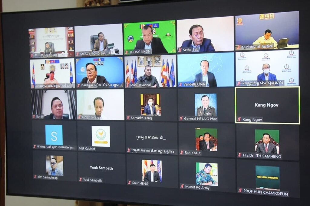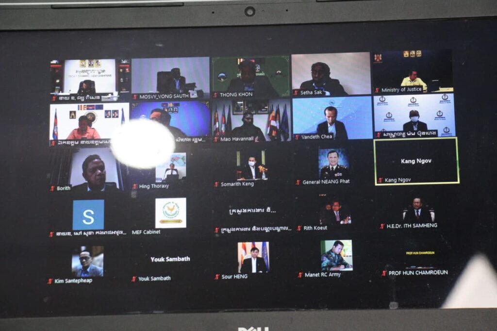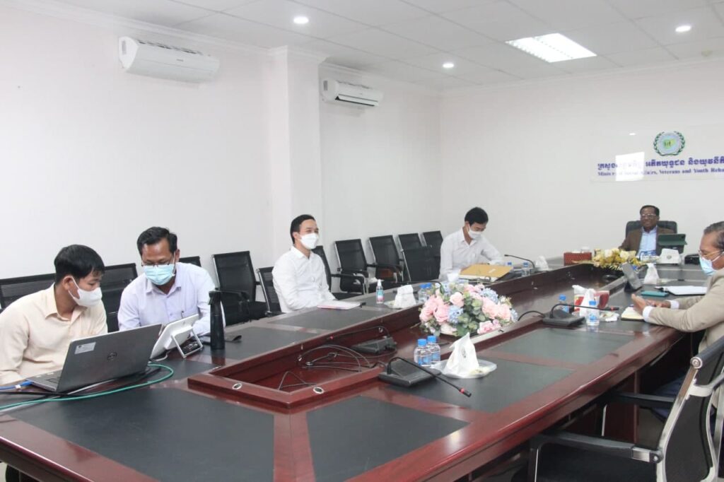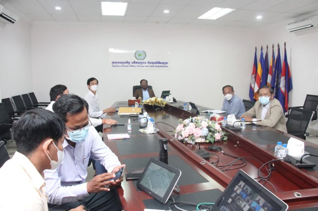 នារសៀលថ្ងៃទី០៦ ខែកញ្ញា ឆ្នាំ២០២១ ឯកឧត្តម វង សូត រដ្ឋមន្ត្រីនិងថ្នាក់ដឹកនាំពាក់ព័ន្ធនៃក្រសួងសង្គមកិច្ច អតីតយុទ្ធជន និងយុវនីតិសម្បទា អញ្ចេីញចូលរួមកិច្ចប្រជុំគណៈប្រចាំការនៃគណ:កម្មការជាតិប្រយុទ្ធនឹងជំងឺកូវីដ-១៩ ដើម្បីពិនិត្យ ពិភាក្សាលើសេចក្តីព្រាងផែនការសកម្មភាពស្តីពីការចាក់វ៉ាក់សាំងការពារជំងឺកូវីដ១៩ ដូសជម្រុញ ក្រោមអធិបតីភាព ឯកឧត្តមអគ្គបណ្ឌិតសភាចារ្យ អូន ព័ន្ធមុនីរ័ត្ន ឧបនាយករដ្ឋមន្រ្តី រដ្ឋមន្រ្តីក្រសួងសេដ្ឋកិច្ច និងហិរញ្ញវត្ថុ និងជាប្រធានគណៈប្រចាំការ នៃគណ:កម្មការជាតិប្រយុទ្ធនឹងជំងឺកូវីដ-១៩ នៅទីស្តីការក្រសួងក្រសួងសង្គមកិច្ច អតីតយុទ្ធជន និងយុវនីតិសម្បទា តាមប្រព័ន្ធអនឡាញ Zoom។