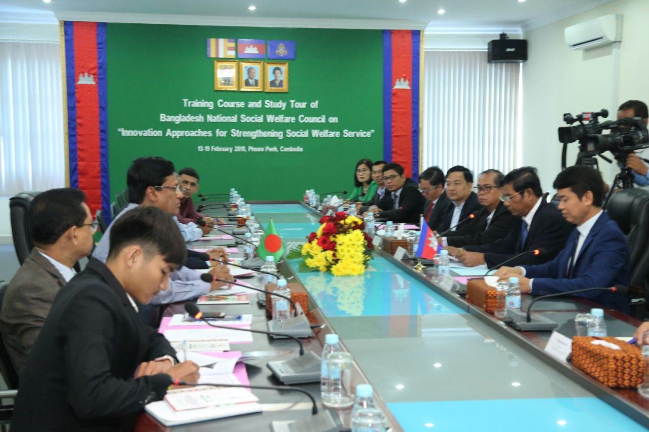 ថ្ងៃព្រហស្បតិ៍ ១០កើត ខែមាឃ ឆ្នាំច សំរឹទ្ធិស័ក ព.ស២៥៦២ ត្រូវនឹងថ្ងៃទី១៤ ខែកុម្ភៈ ឆ្នាំ២០១៩ ក្រសួងសង្គមកិច្ច អតីតយុទ្ធជន និងយុវនីតិសម្បទា និងក្រុមប្រឹក្សាសុខុមាលភាពថ្នាក់ជាតិបង់ក្លាដេស បានជួបសំណេះសំណាលគ្នា ក្នុងគោលបំណងផ្លាស់ប្តូរបទពិសោធន៍គ្នា ជំរុញអភិវឌ្ឍប្រព័ន្ធគាំពារសង្គម និងសុខុមាលភាពប្រជាជននៅកម្ពុជា។
