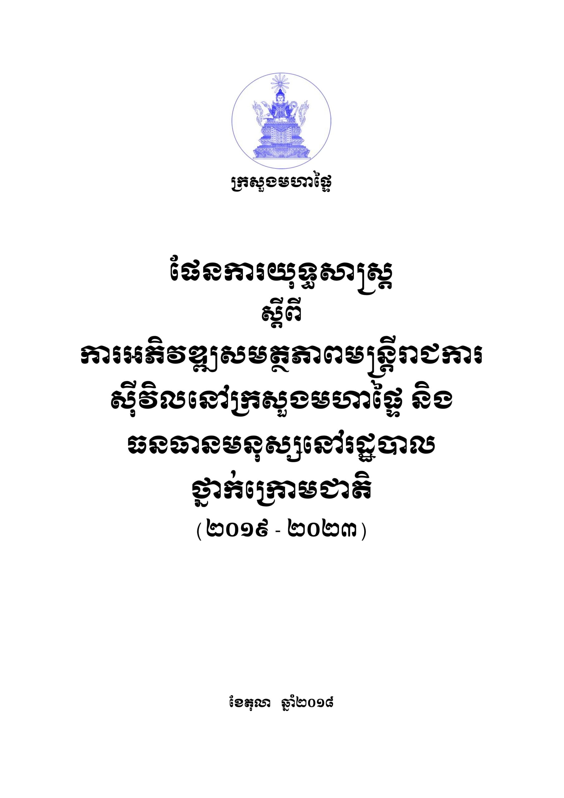 ផែនការយុទ្ធសាស្ត្រ ស្តីពីការអភិវឌ្ឍសមត្ថភាពមន្រ្តីរាជការស៊ីវិលនៅក្រសួងមហាផ្ទៃ និងធនធានមនុស្សនៅរដ្ឋបាលថ្នាក់ក្រោមជាតិ ២០១៩-២០២៣