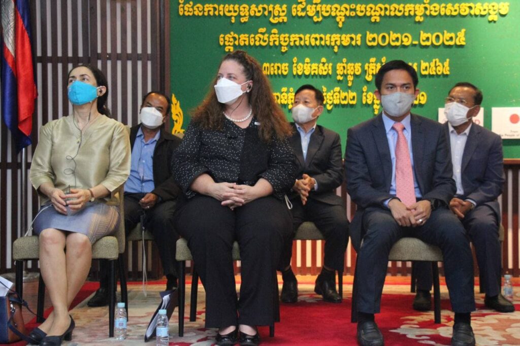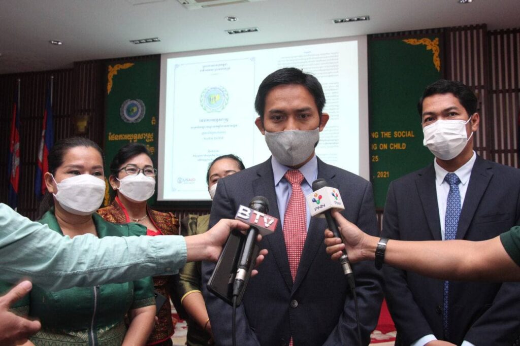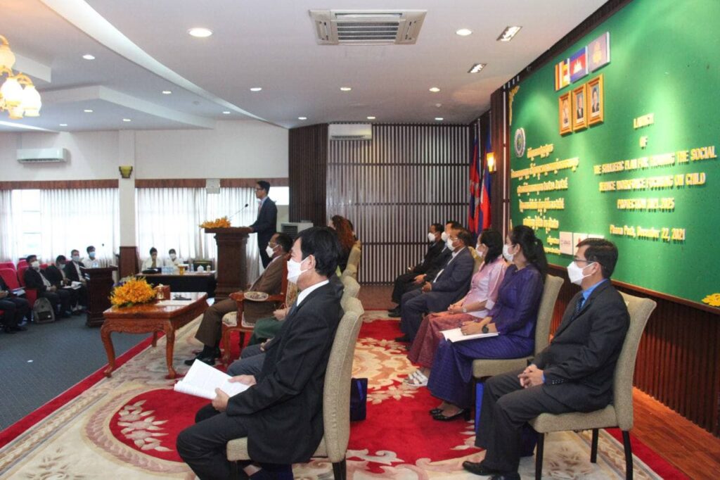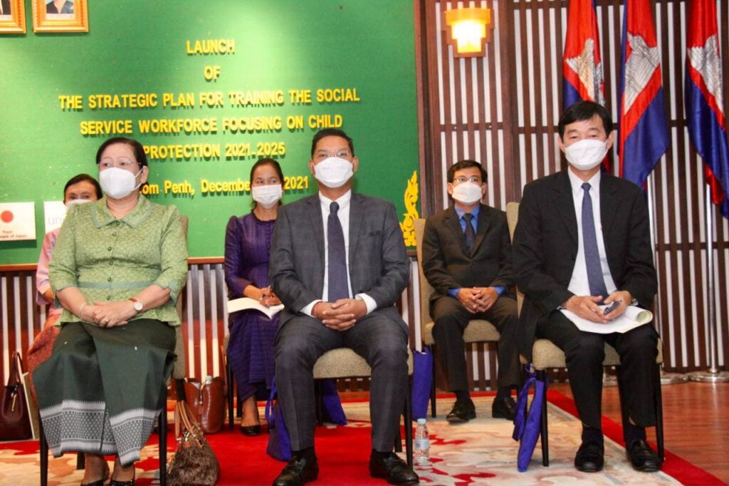 ទីស្តីការក្រសួង៖ ថ្ងៃទី២២ ខែធ្នូ ឆ្នាំ២០២១ ឯកឧត្តម វង សូត រដ្ឋមន្រ្តីសង្គមកិច្ច អតីតយុទ្ធជន និងយុវនីតិសម្បទា អញ្ជើញជាអធិបតី ក្នុងពិធីប្រកាសផ្សព្វផ្សាយផែនការយុទ្ធសាស្ត្រ ដើម្បីបណ្តុះបណ្តាលកម្លាំងសេវាសង្គម ផ្តោតលើកិច្ចការពារកុមារ ២០២១-២០២៥ កម្មវិធីនេះមានការគាំទ្រពី USAID from the People Japan និងUnicef។