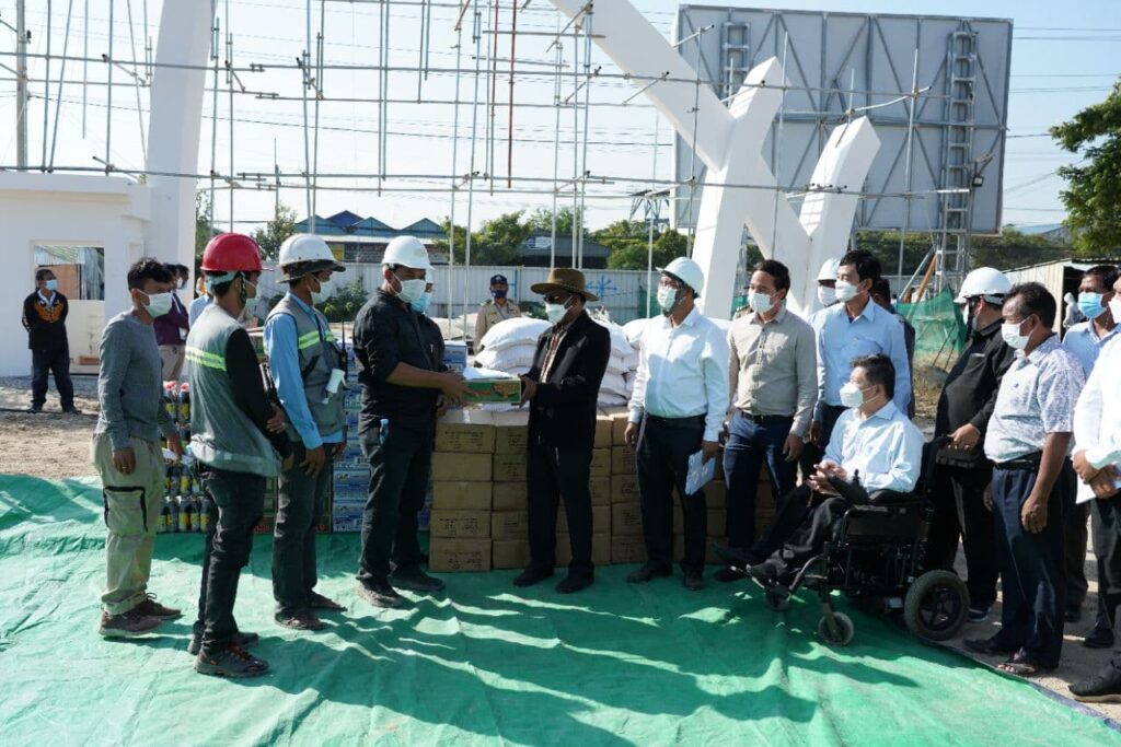 កណ្តាល៖ នាព្រឹកថ្ងៃទី១១ ខែធ្នូ ឆ្នាំ២០២១ ឯកឧត្តម វង សូត រដ្ឋមន្ត្រីក្រសួងសង្គមកិច្ច អតីតយុទ្ធជន និងយុវនីតិសម្បទា រួមទាំងថ្នាក់ដឹកនាំក្រសួង បានចុះមកពិនិត្យដំណើរការសាងសង់មជ្ឈមណ្ឌល និងបាននាំមកនូវអំណោយចែកជូនកម្មករកំពុងសាងសង់មួយចំនួនផងដែរ។