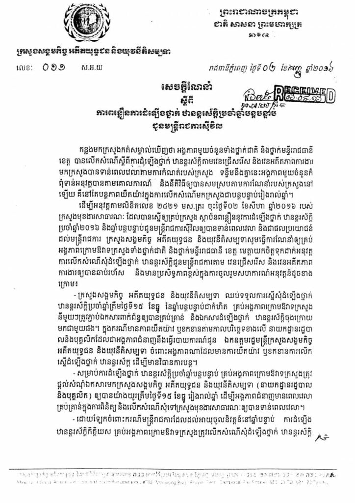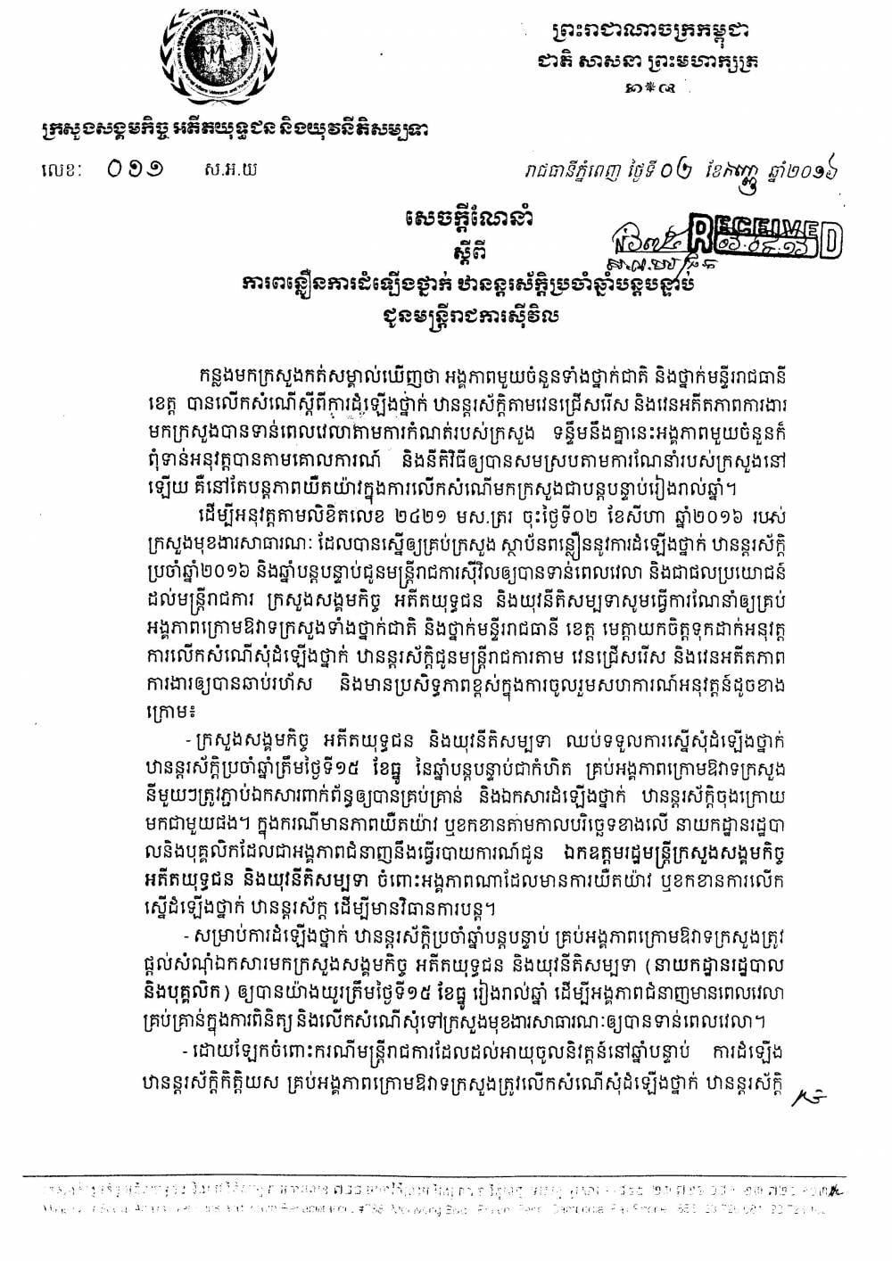 សេចក្តីណែនាំស្តីពីការពន្លឿនការឡើងថ្នាក់ ឋានន្ទរស័ក្តិប្រចាំឆ្នាំបន្តបន្ទាប់ជូនមន្ត្រីរាជការស៊ីវិល