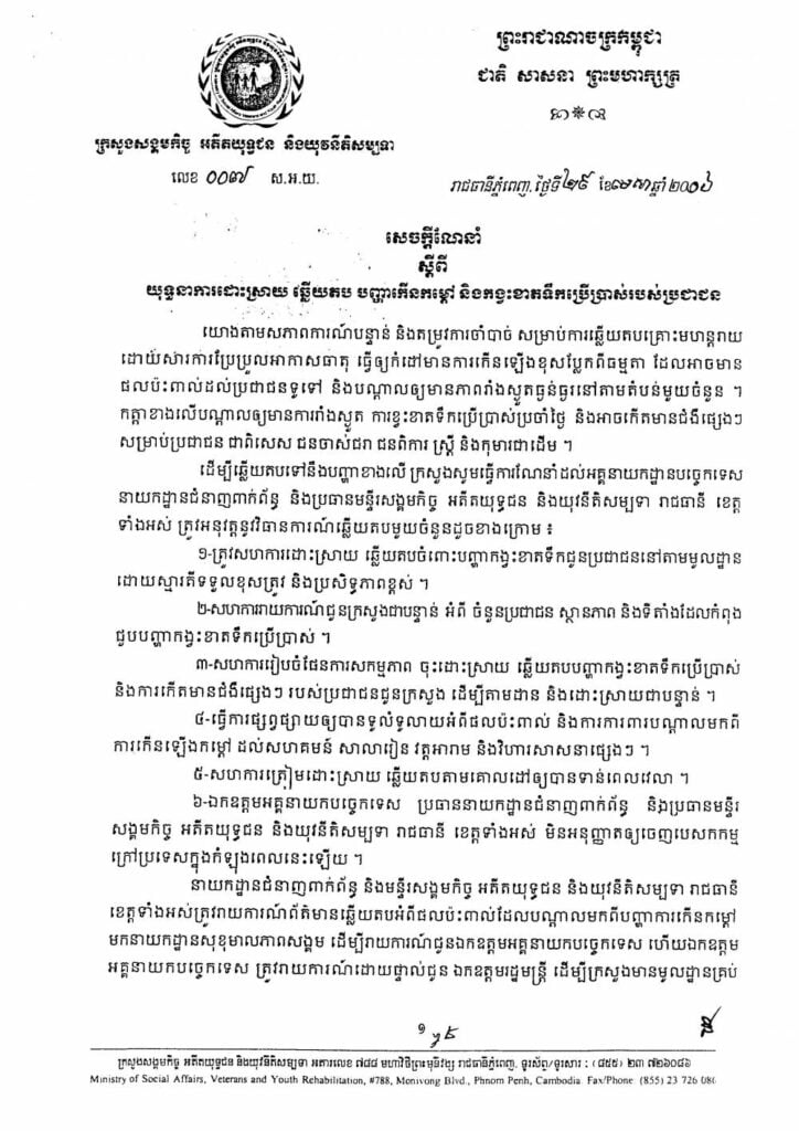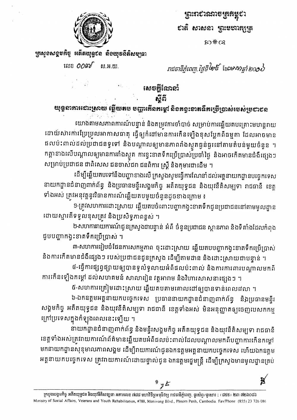 សេចក្តីណែនាំស្តីពីយុទ្ធនាការដោះស្រាយ ឆ្លើយតប បញ្ហាកើនកម្តៅ និងកង្វះខាតទឹកប្រើប្រាស់របស់ប្រជាជន