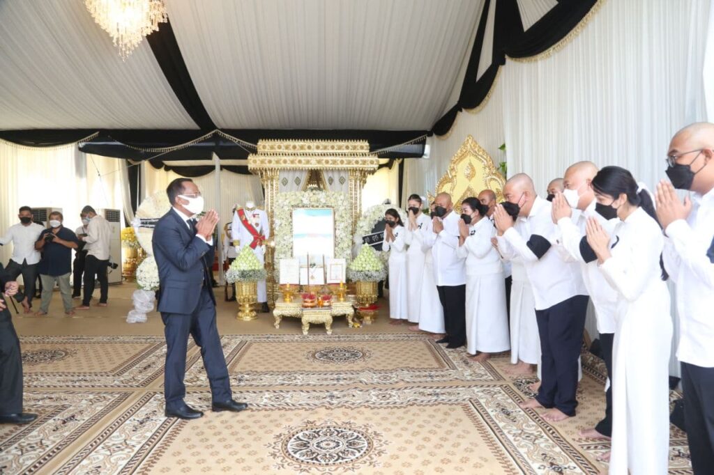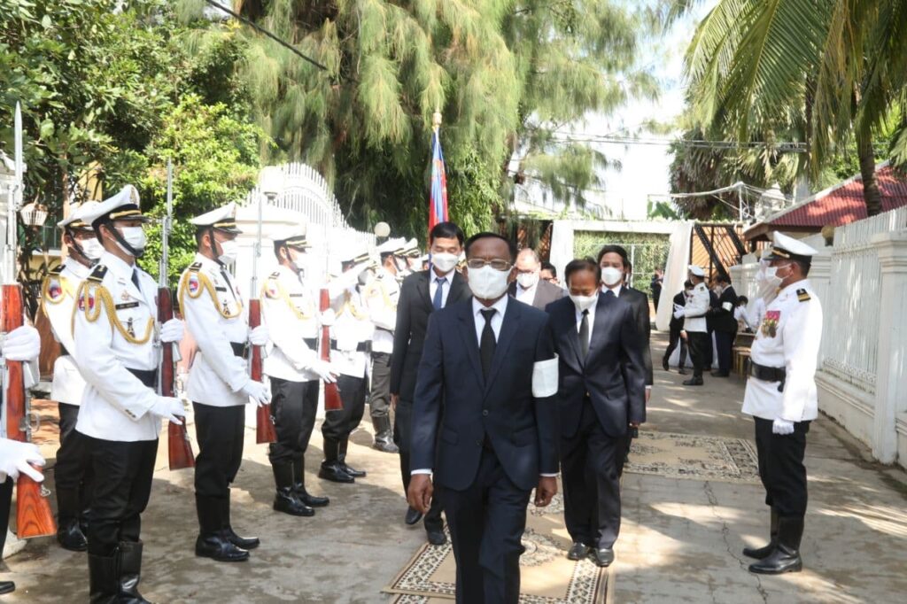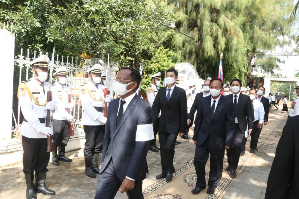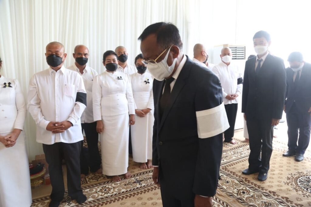 ភ្នំពេញ៖ ឯកឧត្តម វង សូត រដ្ឋមន្ត្រីក្រសួងសង្គមកិច្ច អតីតយុទ្ធជន និងយុវនីតិសម្បទា ដឹកនាំគណៈប្រតិភូក្រសួង អញ្ជើញគោរពវិញ្ញាណក្ខន្ធសព ឯកឧត្តមកិត្តិនីតិកោសលបណ្ឌិត ងួន ញ៉ិល អនុប្រធានទី១ នៃរដ្ឋសភា ដែលបានតម្កល់ធ្វើបុណ្យទក្ខិណានុប្បទានតាមប្រពៃណីពុទ្ធសាសនា នៅគេហដ្ឋាននៃសព នៅព្រឹកថ្ងៃទី៧ ខែវិច្ឆិកា ឆ្នាំ២០២១។