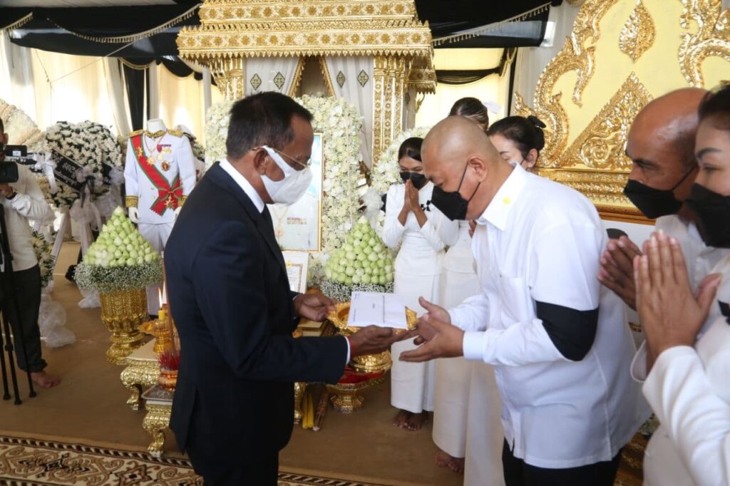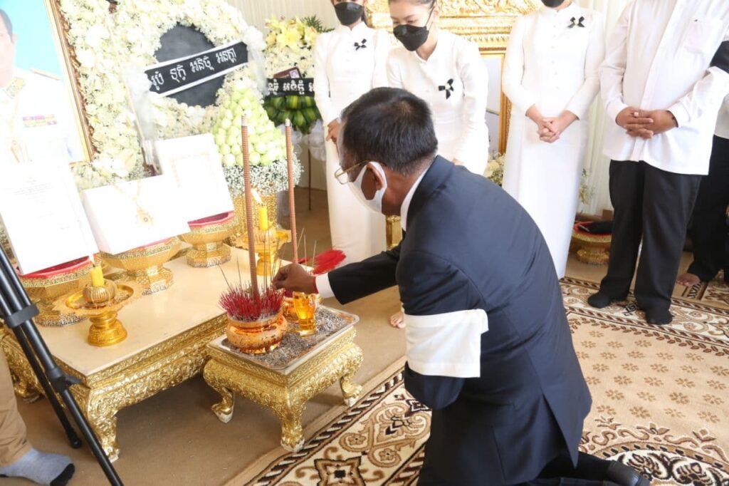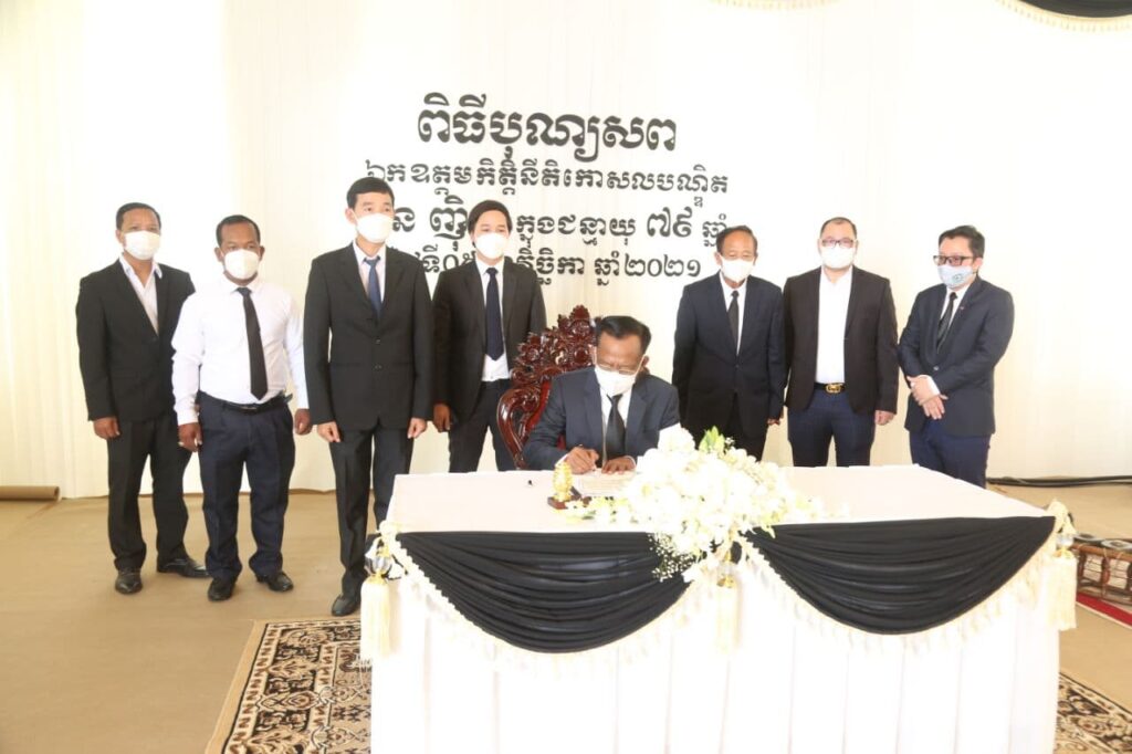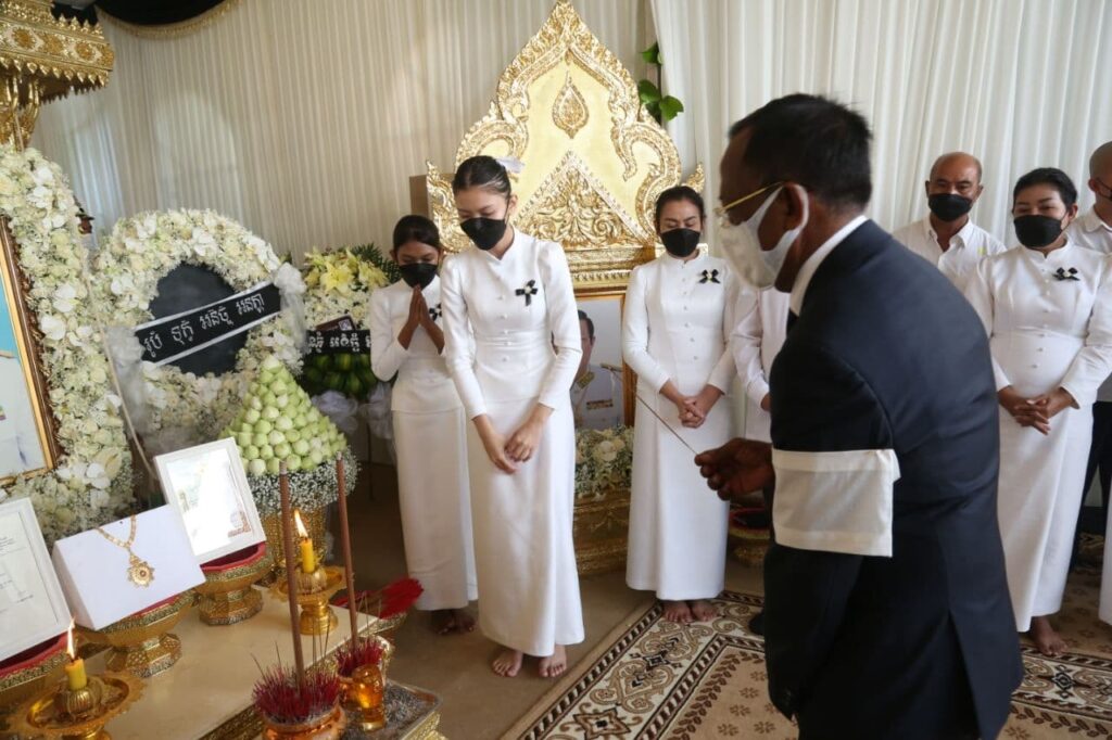 សពឯកឧត្តមកិត្តិនីតិកោសលបណ្ឌិត ងួន ញ៉ិល បានតម្កល់ធ្វើបុណ្យទក្ខិណានុប្បទាន តាមប្រពៃណីពុទ្ធសាសនានៅគេហដ្ឋាននៃសព ភូមិអូរអណ្ដូង សង្កាត់ព្រែកប្រា ខណ្ឌច្បារអំពៅ រាជធានីភ្នំពេញ។