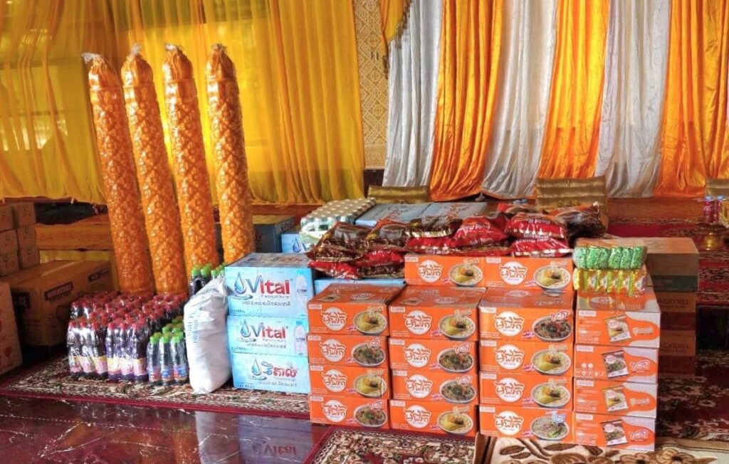 សូមជម្រាបជូនថា ទៀនព្រះវស្សា និងទេយ្យទាន របស់សម្តេចពញាចក្រី ហេង សំរិន តាមរយៈ ឯកឧត្តម វង សូត នាឱកាសនេះ ដែលត្រូវប្រគេនជូនព្រះសង្ឃដែលគង់នៅវត្ត ចំនួន៥២វត្ត ក្នុងនោះមាន៥១វត្ត ក្នុងស្រុកពញាក្រែក ខេត្តត្បូងឃ្មុំ និងមួយវត្ត ក្នុងឃុំជាច ស្រុកកំចាយមារ ខេត្តព្រៃវែង។ ក្នុងនោះវត្តថ្កូវ ឃុំកក់ ស្រុកពញាក្រែក និងវត្តជាច ឃុំជាច ស្រុកកំចាយមារ ក្នុង ១វត្តៗទទួលបាន៖ ទៀនវស្សា និងបច្ច័យ២០ម៉ឺន សាដកចំនួន ៥, អង្ករ ចំនួន ២០០ គីឡូក្រាម,មី ចំនួន ៣០កេស, ទឹកត្រី ចំនួន ១០យួរ, ទឹកសុីអុីវ ចំនួន ១០យួរ, ត្រីខ ចំនួន ០២កេស, ទឹកផ្លែឈេី ចំនួន ០៥កេស, ទឹកបរិសុទ្ធ ចំនួន ២០កេស, កាហ្វេ ចំនួន ០១កេសធំ, ទឹកដោះគោ ខាប់ ចំនួន ០១កេសធំ, តែ ចំនួន ០១កញ្ចប់ ធំ, ស្ករស ចំនួន ០១បេ។ ដោយឡែក វត្តចំនួន ៥១វត្តទៀត ក្នុង ស្រុក ពញាក្រែក ដោយក្នុង មួយវត្តៗ ទទួលបានទៀនព្រះវស្សារ ចំនួន ០១គូរ និងបច្ច័យ ២០ម៉ឺន រៀល ៕