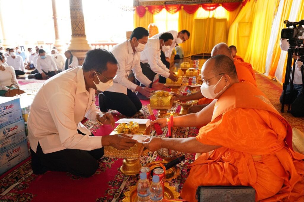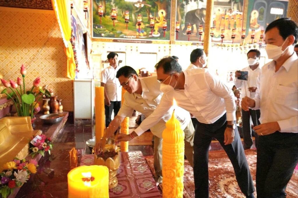បូងឃ្មុំ៖ ថ្ងៃទី១០ ខែកក្កដា ឆ្នាំ២០២២ ឯកឧត្តម វង សូត រដ្ឋមន្រ្តីក្រសួងសង្គមកិច្ច អតីតយុទ្ធជន និងយុវនីតិសម្បទា បាននាំយកទៀនព្រះវស្សា និងទេយ្យទាន របស់សម្តេចពញាចក្រី ហេង សំរិន ប្រធានរដ្ឋសភា វេរប្រគេនដល់ព្រះសង្ឈ និងសំណេះសំណាលជាមួយលោកយាយលោកតា នៅក្នុងវត្តថ្កូវ ស្ថិតក្នុងឃុំកក់ ស្រុកពញាក្រែក ។
