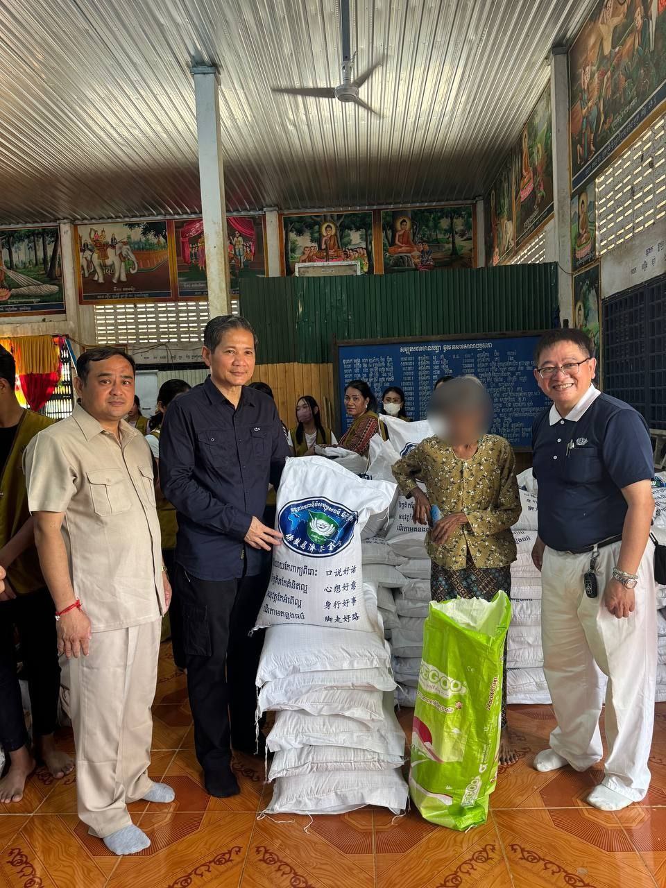 អំណោយសប្បុរសធម៌ដែលក្នុងម្នាក់ៗទទួលបានរួមមាន៖ អង្ករ ៤០គីឡូក្រាម ប្រេងឆា២លីត្រ ម្សៅធញ្ញជាតិ (៥០០ក្រាម) ២កញ្ចប់ នំបុ័ងមួយដើម និងទឹកបរិសុទ្ធ១ដប។