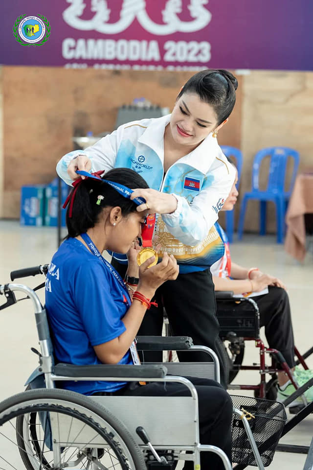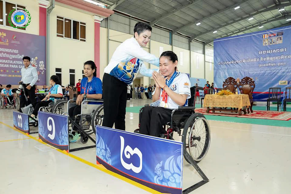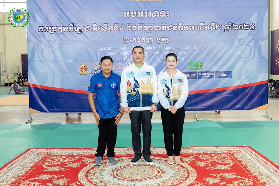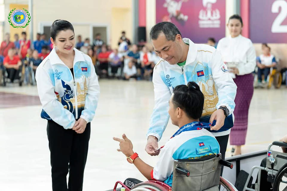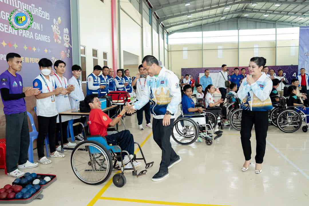 ឯកឧត្តម ជា សុមេធី រដ្ឋមន្ត្រីក្រសួងសង្គមកិច្ច អតីតយុទ្ធជន និងយុវនីតិសម្បទា និងលោកជំទាវ ជា ផល្គុន រសៀលថ្ងៃទី៣ ខែវិច្ឆិកា ឆ្នាំ២០២៤ បានអញ្ជើញចូលរួមទស្សនា និងបំពាក់មេដាយ ជ័យលាភីជូនកីឡាករ កីឡាការិនី បូស្យា ក្នុងព្រឹត្តិការណ៍កីឡាជាតិជនពិការលើកទី២ នាមជ្ឈ មណ្ឌលជាតិនៃជនពិការតេជោសែន និងគណៈកម្មាធិការជាតិប៉ារ៉ាឡាំពិកម្ពុជា ដែលមានទីតាំង ស្ថិតនៅភូមិត្រពាំងស្វាយ សង្កាត់គោកឃ្លាង ខណ្ឌសែនសុខ រាជធានីភ្នំពេញ។