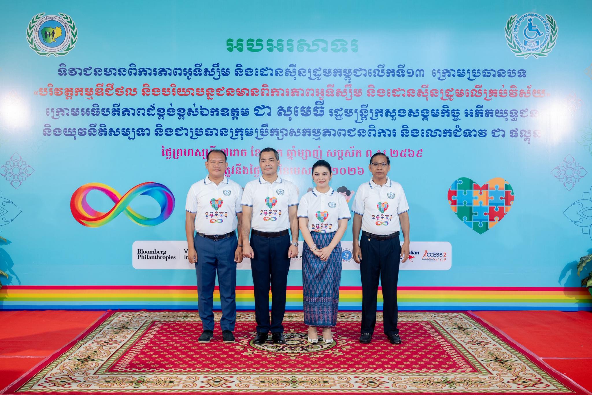 ទីស្តីការក្រសួងសង្គមកិច្ច អតីតយុទ្ធជន និងយុវនីតិសម្បទា ព្រឹកថ្ងៃព្រហស្បតិ៍ ៩ មេសា ឆ្នាំ២០២៦ ឯកឧត្តម ជា សុមេធី រដ្ឋមន្រ្តីក្រសួងសង្គមកិច្ច អតីតយុទ្ធជន និងយុវនីតិសម្បទា លោកជំទាវ ជា ផល្គុន ព្រមទាំងថ្នាក់ដឹកនាំក្រសួង ស.អ.យ បានចូលរួមជាអធិបតីក្នុងកម្មវិធីអបអរសាទរទិវាជនមានពិការភាពអូទីស្សឹម និងដោនសុីនដ្រូមកម្ពុជា លើកទី១៣ ក្រោមប្រធានបទ ៖ ” បរិវត្តកម្មឌីជីថល និងបរិយាបន្នជនមានពិការភាពអូទីស្សឹម និងដោនសុីនដ្រូមលើគ្រប់វិស័យ ” ។