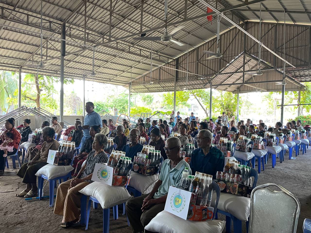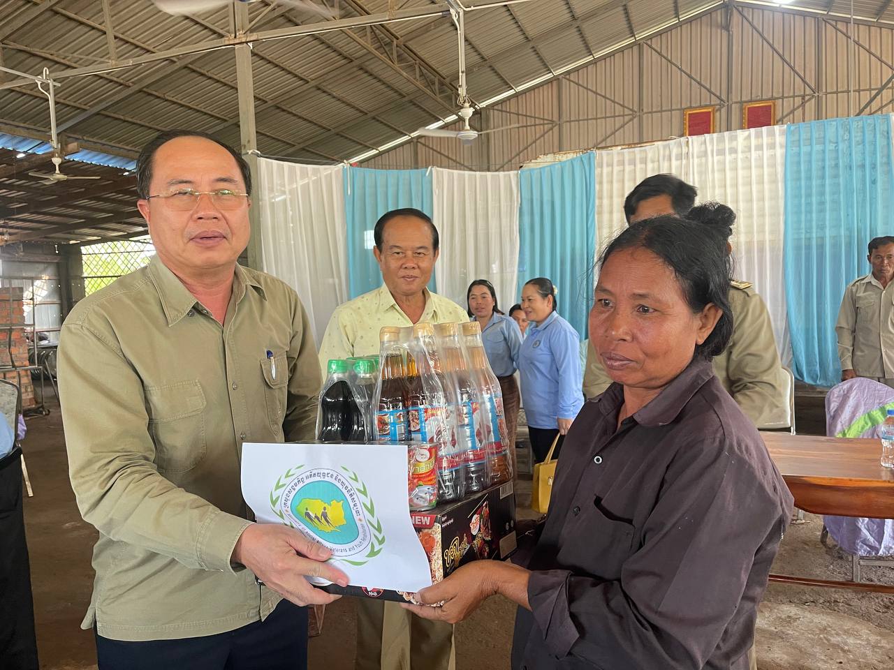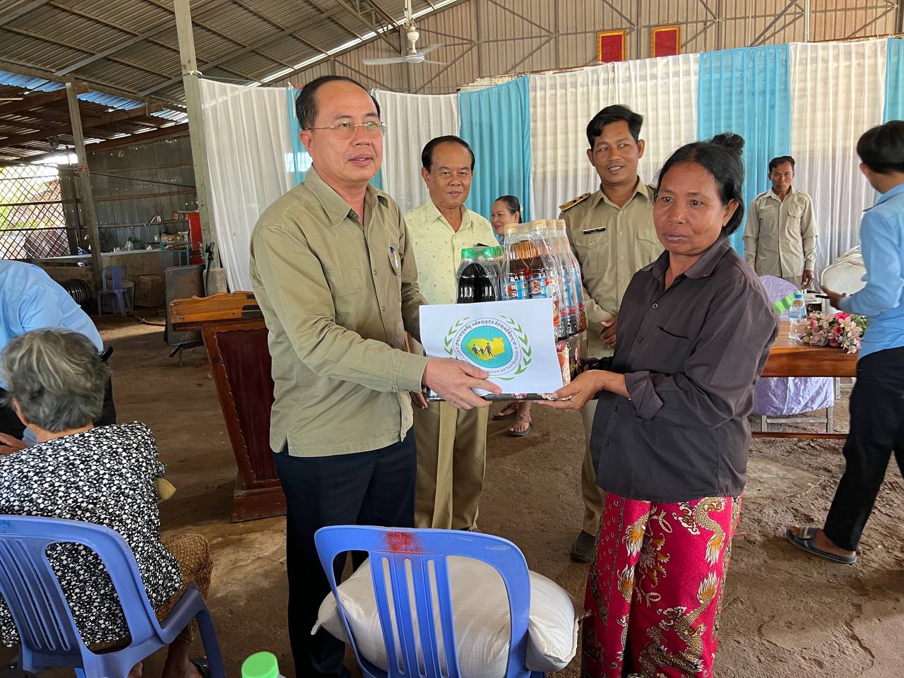 ពិធីនេះប្រារព្ធឡើងក្រោមអធិបតីភាព ឯកឧត្តម លី សុវណ្ណរិទ្ធិ អភិបាលស្តីទីខេត្តបន្ទាយមានជ័យ ដែលមានប្រជាពលរដ្ឋរងគ្រោះចំនួន ៦០គ្រួសារ ក្នុង១គ្រួសារទទួលបាន អង្ករ ២៥គីឡូ មី ១កេស ទឹកស៊ីអ៉ីវ ១យួរ ទឹកត្រី ១យួរ ត្រីខ១យួរ៕