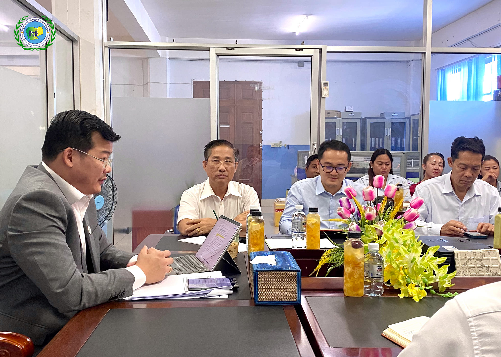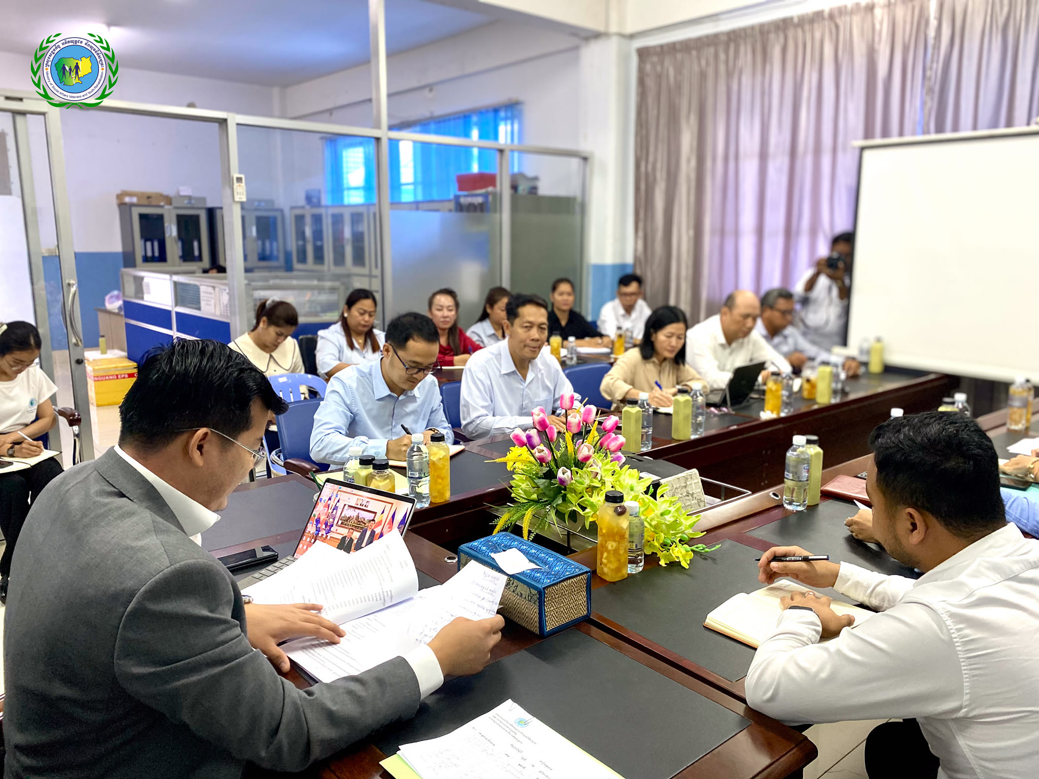 ដោយទទួលបានការអនុញ្ញាតដ៏ខ្ពង់ខ្ពស់ពី ឯកឧត្តម ជា សុមេធី រដ្ឋមន្ត្រីក្រសួងសង្គមកិច្ច អតីតយុទ្ធជន និងយុវនីតិសម្បទា ឯកឧត្តម អេង ចំរើន រដ្ឋលេខាធិការ ព្រឹកថ្ងៃទី១ ខែវិច្ឆិកា ឆ្នាំ២០២៤ បានដឹកនាំកិច្ចប្រជុំវឌ្ឍនភាពការងារលេខាដ្ឋាន គ.ម.ច ក្រោមការរៀបចំដោយនាយកដ្ឋានមនុស្សចាស់ និងអតីតយុទ្ធជន ដោយមានការចូលរួមពី ឯកឧត្តម វ៉េង រិទ្ធិស័ក្ក អនុរដ្ឋលេខាធិការ លោកអគ្គនាយករងសេវាសង្គមកិច្ច លោក ស៊ុំ ចំរើន ប្រធាននាយកដ្ឋានមនុស្សចាស់ និងអតីតយុទ្ធជន និងក្រុមការងារ នៃនាយកដ្ឋានមនុស្សចាស់ ក្នុងគោលបំណង៖