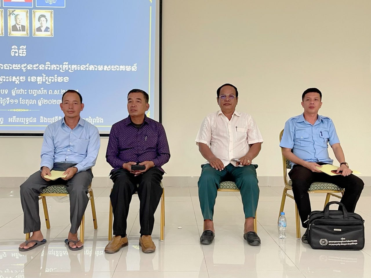 ព្រៃវែង៖ ថ្ងៃពុធ ទី១១ ខែតុលា ឆ្នាំ២០២៣ ឯកឧត្តម សន សុផល អគ្គនាយកនៃអគ្គនាយកដ្ឋានស្តារសម្បទា ក្រសួងសង្គមកិច្ច អតីតយុទ្ធជន និងយុវនីតិសម្បទា បានអញ្ជើញជាអធិបតី ក្នុងពិធីបើកផ្តល់របបគោលនយោបាយជូនចំពោះជនពិការក្រីក្រនៅតាមសហគមន៍ ស្រុកព្រះស្តេច ខេត្តព្រៃវែង សរុបចំនួន ២៣៤នាក់។