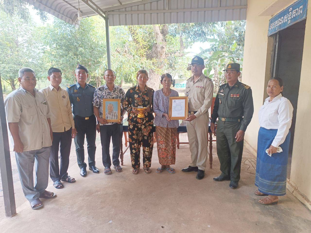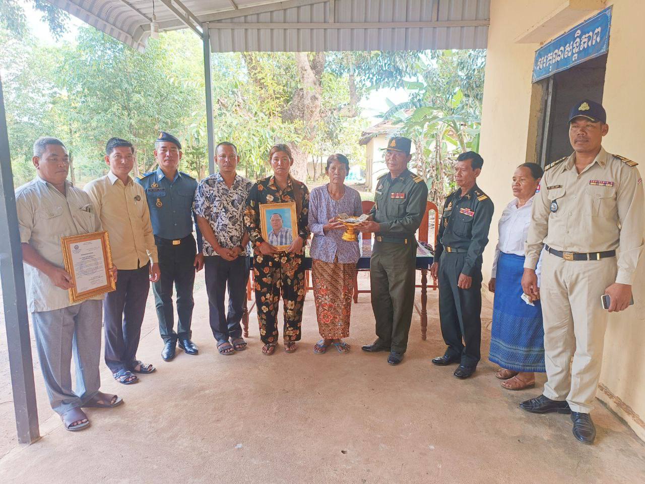 កំពង់ឆ្នាំង÷ ថ្ងៃទី១១ ខែធ្នូ ឆ្នាំ២០២៣ លោកវរ:សេនីយ៍ឯក ចក់ ជឿន មេបញ្ជាការរងតំបន់ប្រតិបត្តិការសឹករងខេត្ត និងលោក មូ ចន្ថា ប្រធានការិយាល័យអតីតយុទ្ធជនខេត្ត តំណាង ឯកឧត្តម អ៊ុ សុភា ប្រធានសមាគមអតីតយុទ្ធជនខេត្ត រួមជាមួយក្រុមការងារថ្នាក់ខេត្តស្រុកនិងកងកម្លាំងប្រដាប់អាវុធទាំងបី បានចុះប្រគល់ថវិកាបេឡាមរណៈសង្រ្គោះចំនួន ៤ ០០០ ០០០រៀល និងលិខិតចូលរួមមរណៈទុក្ខជូនដល់ លោកស្រី ឃ្លោក វ៉ុន ត្រូវជាគ្រួសាររបស់សពរបស់ជនបាត់បង់ឈ្មោះ វ៉ែន តូច អត្តលេខ (IA 03000667) ដែលទទួលមរណភាពនៅភូមិត្រងិល ឃុំត្រងិល ស្រុកកំពង់លែង។
