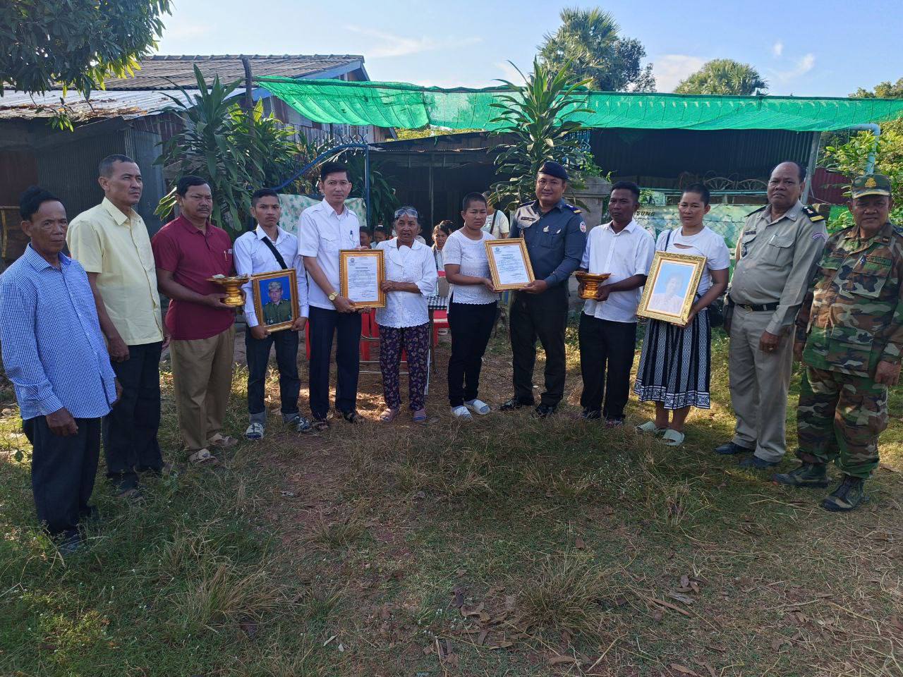 កំពង់ឆ្នាំង÷ ថ្ងៃទី១២ ខែធ្នូ ឆ្នាំ២០២៣ លោកវរ:សេនីយ៍ឯក ស្រី ម៉ាច មេបញ្ជាការង តំបន់ប្រតិបត្តិការសឹករងខេត្ត និងលោក សុវណ្ណវឌ្ឍនា ប្រធានការិយាល័យបេឡាជាតិ អតីតយុទ្ធជនខេត្ត តំណាង ឯកឧត្តម អ៊ុ សុភា ប្រធានសមាគមអតីតយុទ្ធជនខេត្ត រួមជាមួយក្រុមការងារថ្នាក់ខេត្តស្រុកនិងកងកម្លាំងប្រដាប់អាវុធទាំងបី បានចុះប្រគល់ថវិកាបេឡាមរណភាពសង្រ្គោះចំនួន ១២ ០០០ ០០០រៀល និងលិខិតចូលរួមមរណទុក្ខ ជូនគ្រួសារសមាជិកអតីតយុទ្ធជនចំនួន ៣គ្រួសារ ស្ថិតនៅក្នុងស្រុករលាប្អៀរ និងស្រុកកំពង់ត្រឡាច ខេត្តកំពង់ឆ្នាំង រួមមាន