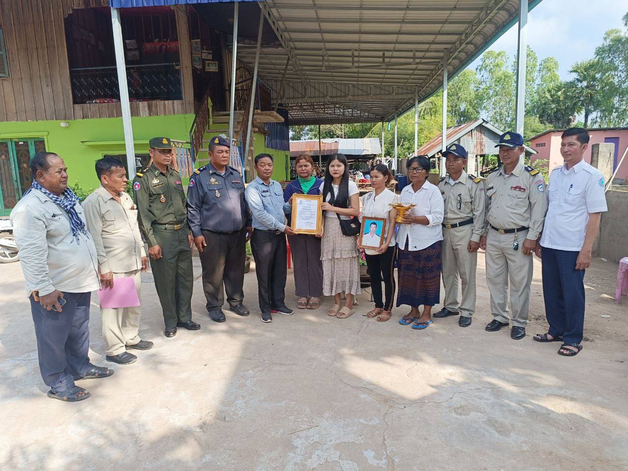 - ១-លោកស្រី ពេជ្រ ស៊ុនគិរី ត្រូវជាកូនរបស់សពអតីតគ្រួសារពលីឈ្មោះ ស៊ុន លី ទទួលមរណភាពនៅ ភូមិព្រៃពួច ឃុំជ្រៃបាក់ ស្រុករលាប្អៀរ។