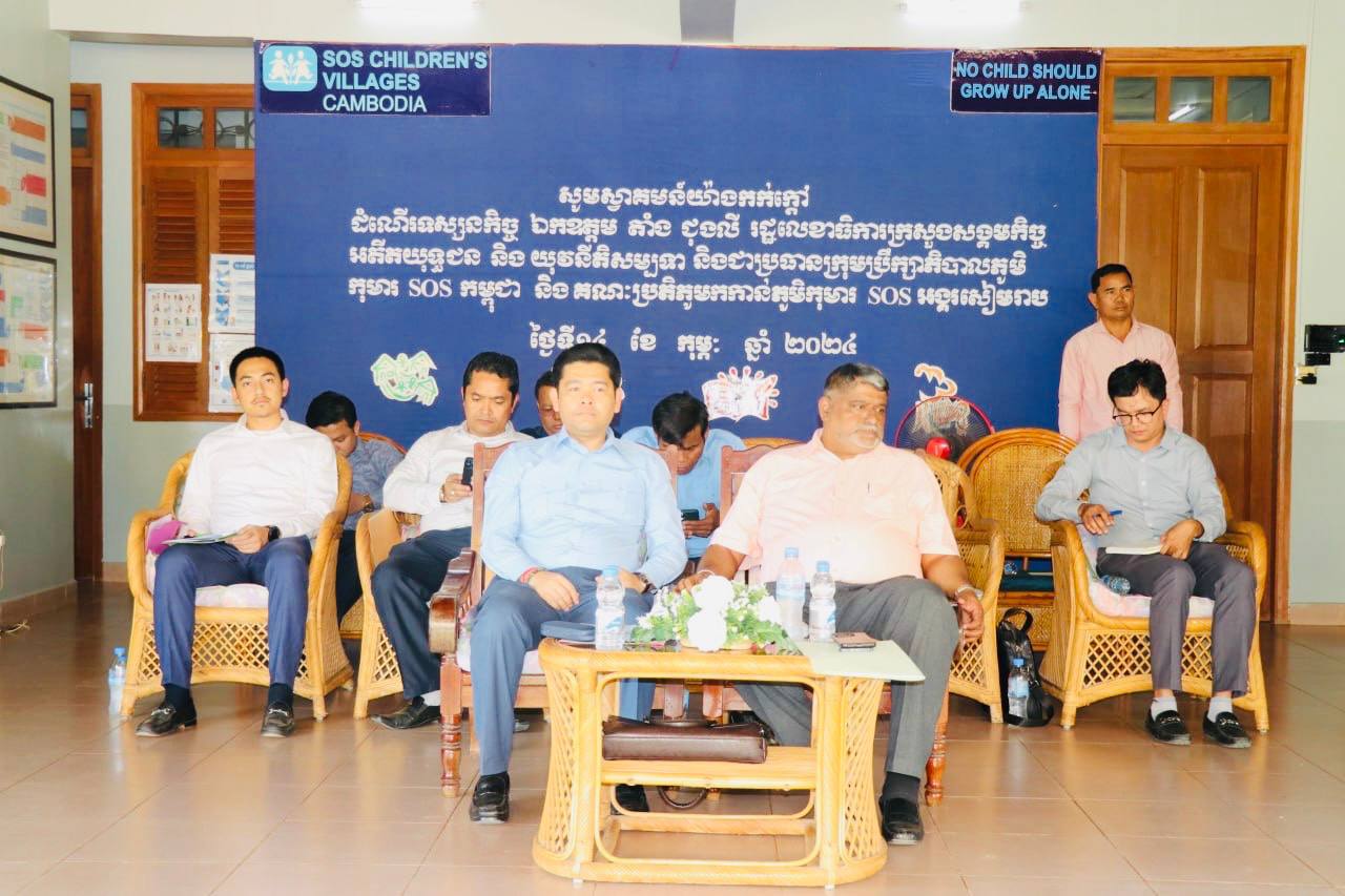 ខេត្តសៀមរាប៖ នៅរសៀលថ្ងៃទី១៤ ខែកុម្ភៈ ឆ្នាំ២០២៤ ដោយទទួលបានការអនុញ្ញាតដ៏ខ្ពង់ខ្ពស់ពីឯកឧត្តមរដ្ឋមន្រ្តី ឯកឧត្តម តាំង ជុងលី រដ្ឋលេខាធិការ ក្រសួងសង្គមកិច្ច អតីតយុទ្ធជន និងយុវនីតិសម្បទា និងជាប្រធានក្រុមប្រឹក្សាភិបាលអង្គការភូមិកុមារ SOS កម្ពុជា បានដឹកនាំប្រតិភូចុះត្រួតពិនិត្យវឌ្ឍនភាពការងារ និងផែនការសកម្មភាពបន្តរបស់អង្គការភូមិកុមារ SOS ប្រចាំខេត្តសៀមរាប ដោយមានការចូលរួមពី លោកប្រធានមន្ទីរ ស.អ.យ ខេត្តសៀមរាប លោកនាយកភូមិកុមារ លោកនាយកសាលាមត្តេយ្យ និងសាលាហ័រម៉ាន ម៉ៃន័រ SOS អ្នកម្តាយ អ្នកមីង ប្រធានយុវជន និងបុគ្គលិក មន្ត្រីរដ្ឋបាលសរុបចំនួន ៥៣នាក់។