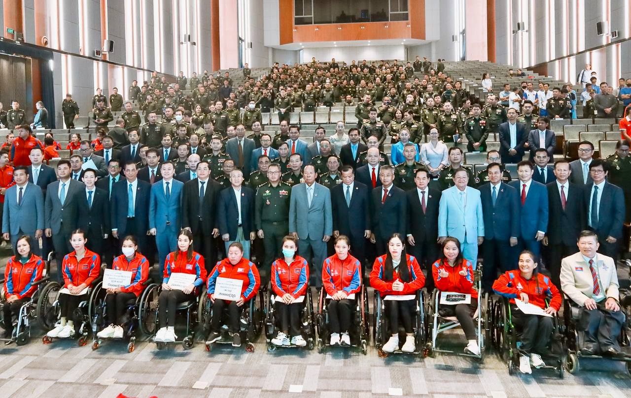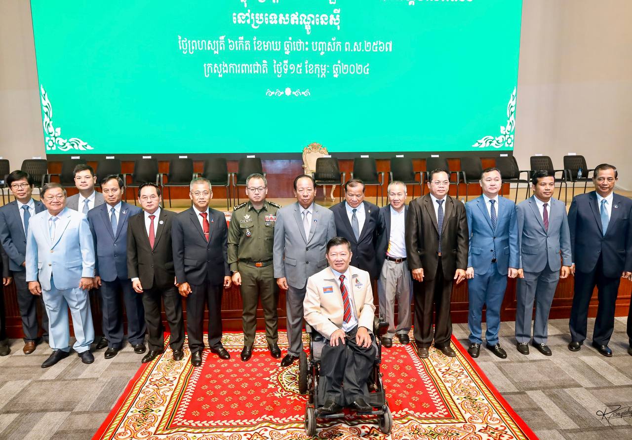 ភ្នំពេញ ៖ នៅព្រឹកថ្ងៃទី១៥ ខែកុម្ភៈ ឆ្នាំ២០២៤ ឯកឧត្តម ប្រាក់ សុខយូរ រដ្ឋលេខាធិការប្រចាំការ ក្រសួងសង្គមកិច្ច អតីតយុទ្ធជន និងយុវនីតិសម្បទា តំណាងដ៏ខ្ពង់ខ្ពស់ឯកឧត្តម ជា សុមេធី រដ្ឋមន្ដ្រីក្រសួងសង្គមកិច្ច អតីតយុទ្ធជន និងយុវនីតិសម្បទា បានអញ្ជើញចូលរួមជាគណៈអធិបតីក្នុងពិធីប្រគល់ប្រាក់រង្វាន់លើកទឹកចិត្តរបស់ សម្តេចអគ្គមហាសេនាបតីតេជោ ហ៊ុន សែន ប្រធានក្រុមឧត្តមប្រឹក្សាផ្ទាល់ព្រះមហាក្សត្រ និងសម្តេចកិត្តិព្រឹទ្ធបណ្ឌិត ប៊ុន រ៉ានី ហ៊ុន សែន ជូនដល់គ្រូបង្វឹក គ្រូជំនួយ អត្តពលិកជនពិការជ័យលាភី ក្នុងព្រឹត្តិការណ៍កីឡាអាស៊ានប៉ារ៉ាហ្គេមលើកទី១១ នៅប្រទេសឥណ្ឌូនេស៊ី ឆ្នាំ២០២២។