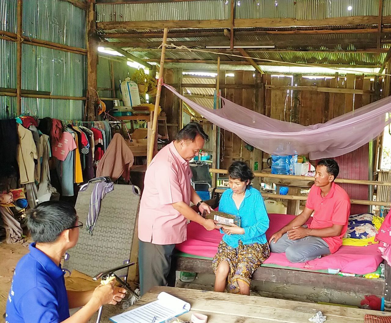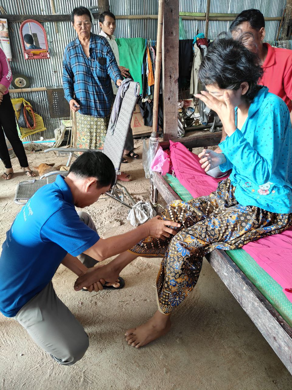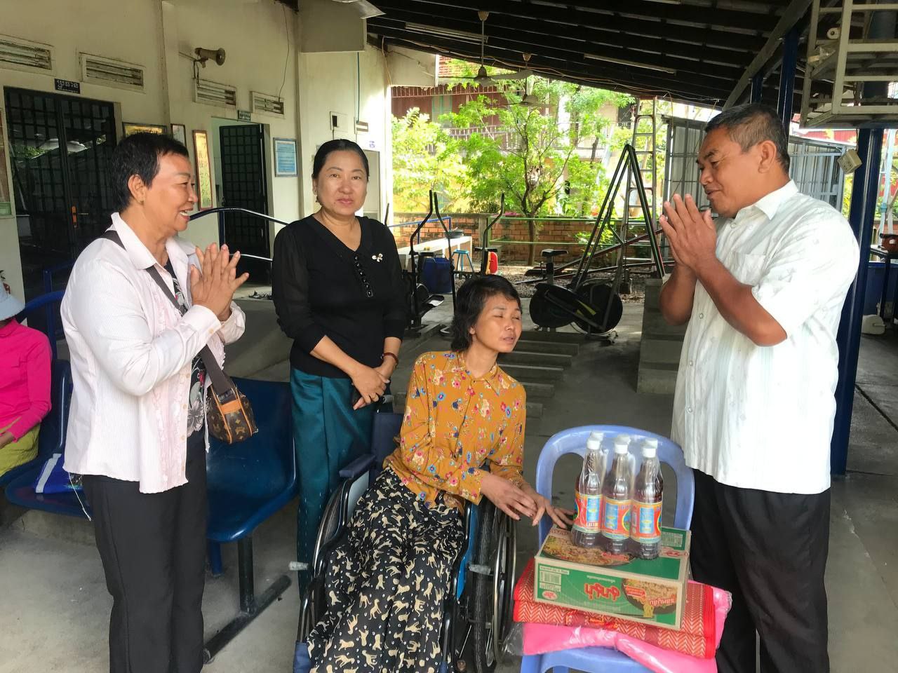 ខេត្តកំពង់ឆ្នាំង÷ ថ្ងៃទី១៧ ខែតុលា ឆ្នាំ២០២៣ លោក ឈាង ចន្ធី ប្រធានមន្ទីរសង្គមកិច្ច អតីតយុទ្ធជន និងយុវនីតិសម្បទាខេត្តកំពង់ឆ្នាំង និងមន្ត្រីជំនាញមជ្ឈមណ្ឌលស្តារខេត្ត បានចុះសួរសុខទុក្ខនិងពិនិត្យមើលស្ថានភាពជនមានពិការភាពឈ្មោះ ភយ ចាន់រ៉ានី ភេទស្រី អាយុ ៤២ឆ្នាំ រស់នៅភូមិព្រីងកោង ឃុំជើងគ្រាវ ស្រុករលាប្អៀរ និងបានឲ្យគាត់មកទទួលសេវាស្តារ ថ្ងៃទី១៨ ខែតុលា ឆ្នាំ២០២៣ ដើម្បីធ្វើរណបអមជើង និងរទេះដើម្បីសម្រួលដល់ការធ្វើដំណើរ លោកប្រធានមន្ទីរក៏បានជួយឧបត្ថម្ភដូចជា មុង១ កន្ទេល១ ទឹកត្រី១យួរ មី១កេះ សារុង២ ថវិកា ៤ម៉ឺនរៀល៕