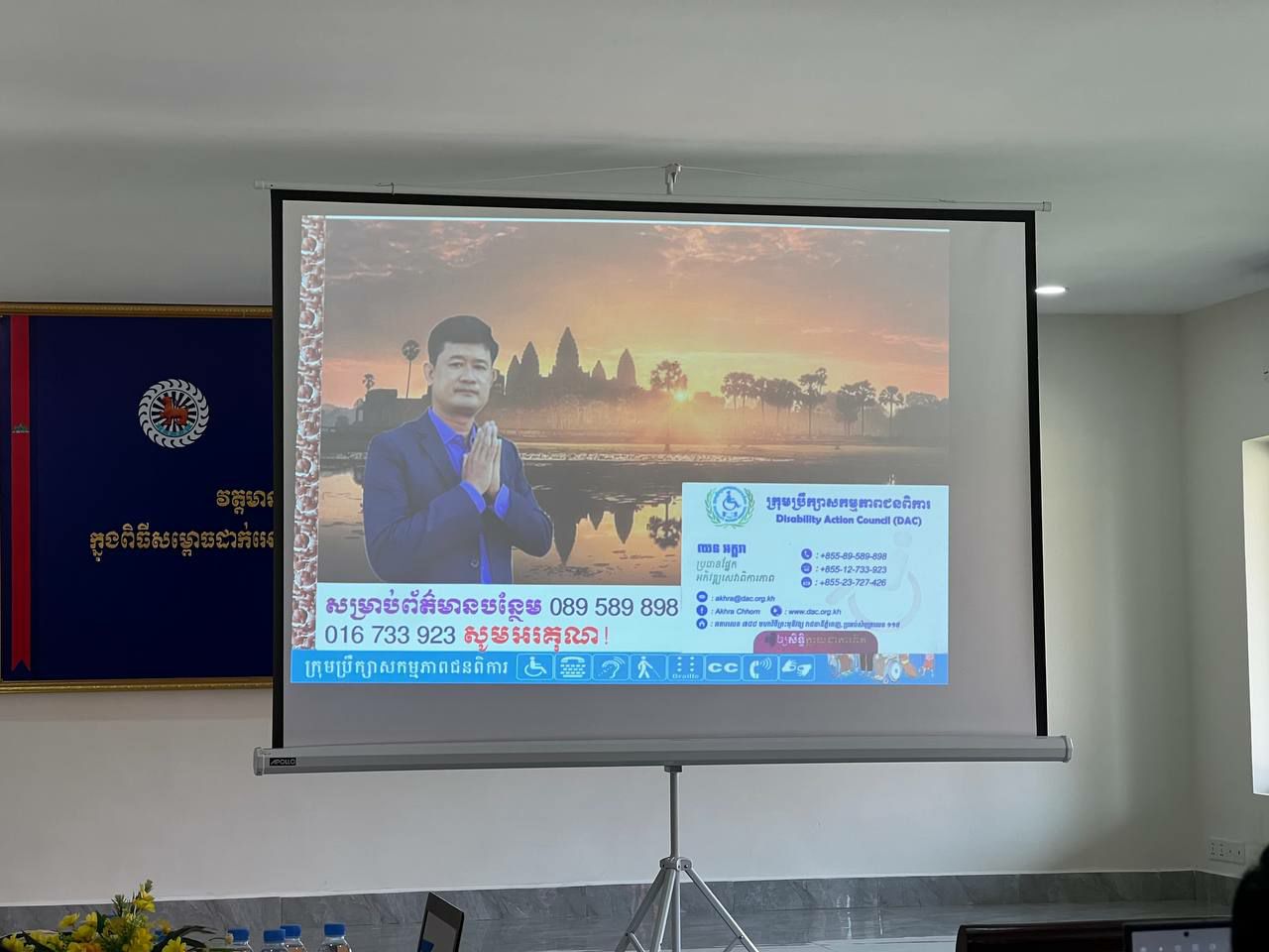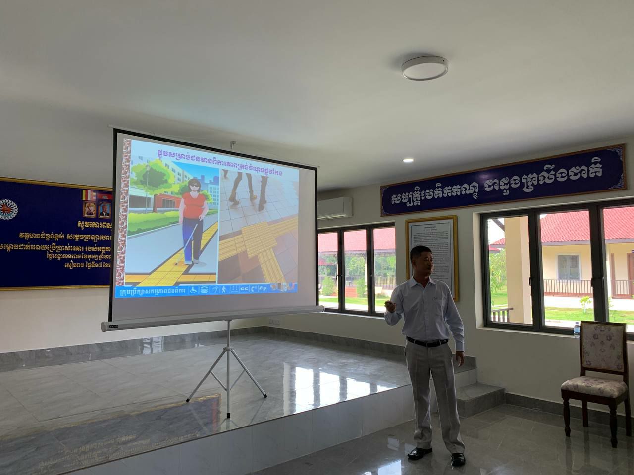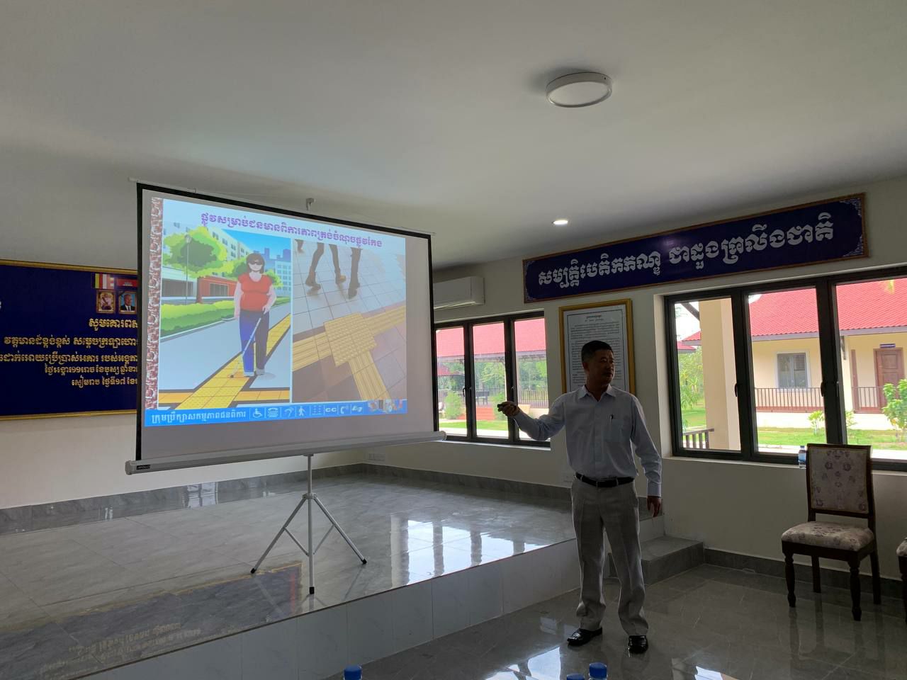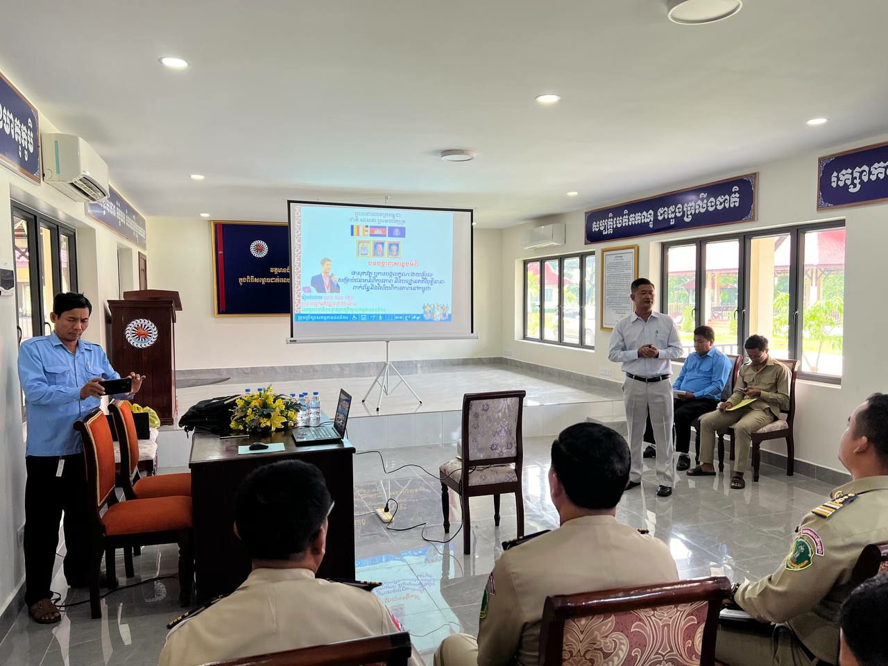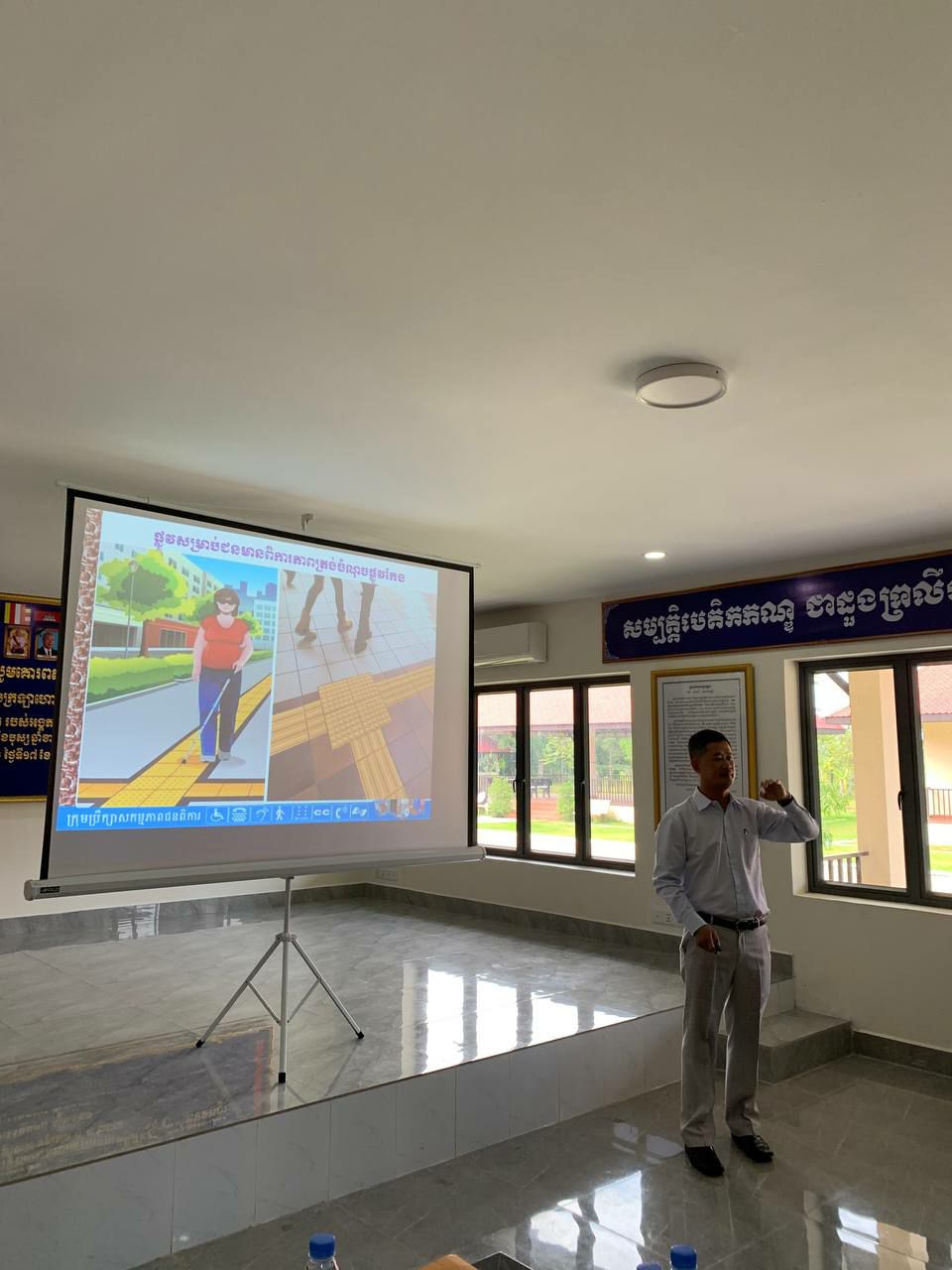 សៀមរាប÷ ថ្ងៃពុធ ទី១៨ ខែតុលា ឆ្នាំ២០២៣ ក្រុមប្រឹក្សាសកម្មភាពជនពិការខេត្តសៀមរាប សហការជាមួយអគ្គលេខាធិការដ្ឋានក្រុមប្រឹក្សាសកម្មភាពជនពិការ រៀបចំវគ្គបណ្តុះបណ្តាលស្តីពី “បទដ្ឋានបច្ចេកទេសហេដ្ឋារចនាសម្ព័ន្ធរូបវន្តបង្កលក្ខណៈងាយស្រួលសម្រាប់ជនមានពិការភាព” និងផ្សព្វផ្សាយលិខិតបទដ្ឋានគតិយុត្តនានាពាក់ព័ន្ធនិងវិស័យពិការភាពនៅក្នុងព្រះរាជាណាចក្រកម្ពុជា ជូនដល់ មន្ត្រីជំនាញ ក្នុងអង្គភាពនគរបាលការពារបេតិកភណ្ឌប្រចាំតំបន់អង្គរ នៃស្នងការនគរបាលជាតិ ក្រសួងមហាផ្ទៃ ដែលមានអ្នកចូលរួម សរុបចំនួន ៤៩នាក់ នៅអង្គភាពនគរបាលការពារបេតិកភណ្ឌប្រចាំតំបន់អង្គរខេត្តសៀមរាប៕
