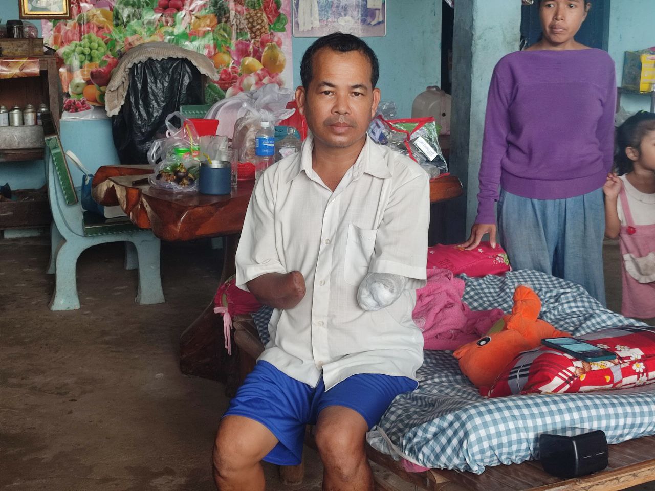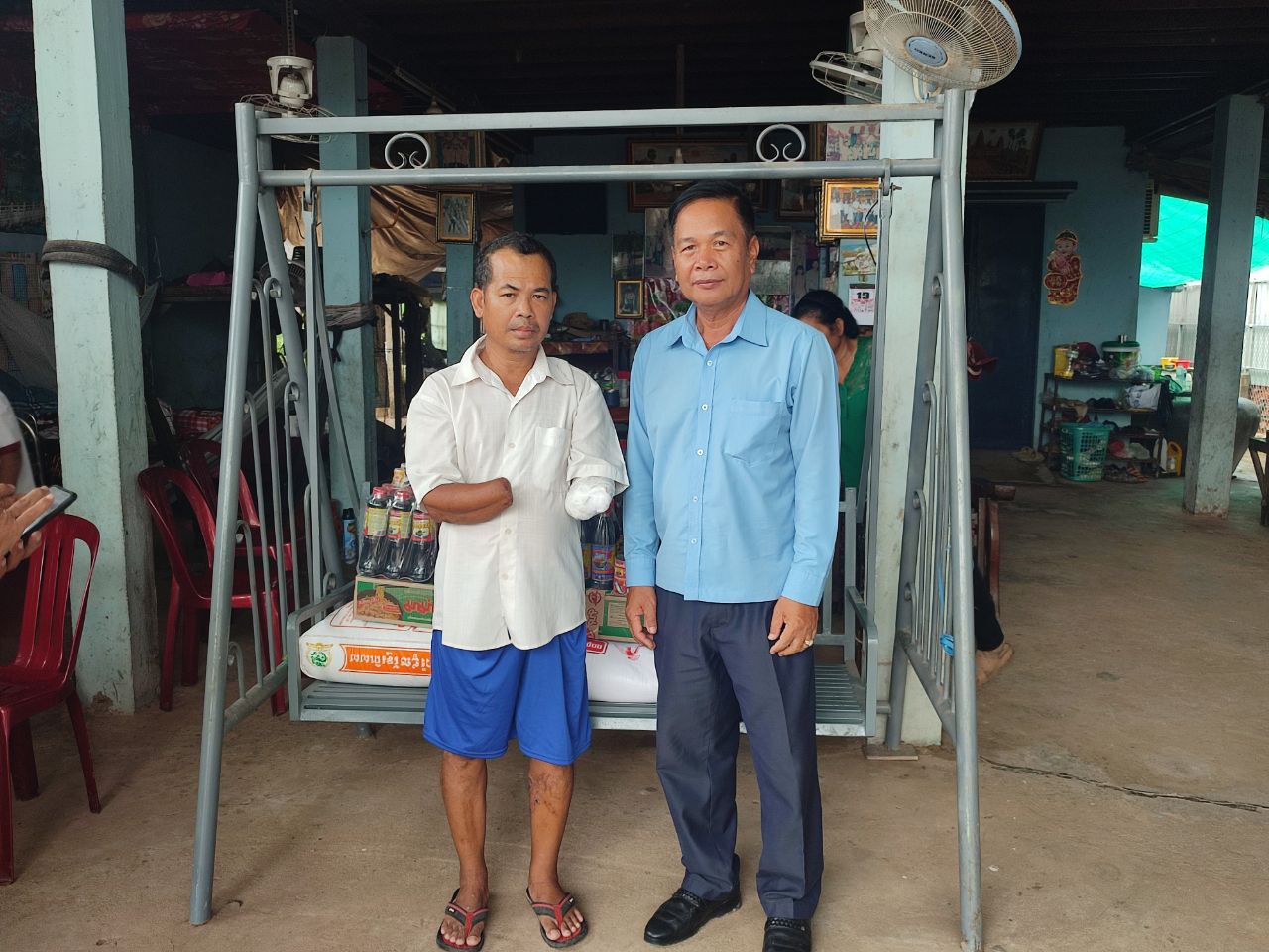 ខេត្តកណ្តាល ៖ ថ្ងៃសុក្រ ១៤កើត ខែអាសាឍ ឆ្នាំរោង ឆស័ក ពុទ្ធសករាជ ២៥៦៨ ត្រូវនឹងថ្ងៃទី១៩ ខែកក្កដា ឆ្នាំ២០២៤ ដោយមានការណែនាំដ៏ខ្ពង់ខ្ពស់ពី ឯកឧត្តម ជា សុមេធី រដ្ឋមន្ត្រី នៃក្រសួងសង្គមកិច្ច អតីតយុទ្ធជន និងយុវនីតិសម្បទា មន្ទីរសង្គមកិច្ច អតីតយុទ្ធជន និងយុវនីតិសម្បទាខេត្តកណ្តាល បានសហការជាមួយសាខាមូលនិធិជនពិការខេត្តកណ្តាល បានចុះសួរសុខទុក្ខ ជនមានពិការភាពដៃទាំងសងខាង ឈ្មោះ លឹម ទូច ភេទប្រុស មានប្រពន្ធ ព្រមទាំងកូនចំនួន ០៥នាក់ មុខរបរជាមន្រ្តីស៊ីម៉ាក់ បានរងគ្រោះដោយសារផ្ទុះគ្រាប់ កាលពីថ្ងៃទី២៩ ខែមិថុនា ឆ្នាំ២០២៤ បណ្តាលឱ្យពិការដៃទាំងសងខាង បច្ចុប្បន្នរស់នៅភូមិឬស្សីដាច់ ឃុំព្រែកអំបិល ស្រុកស្អាង ខេត្តកណ្តាល។