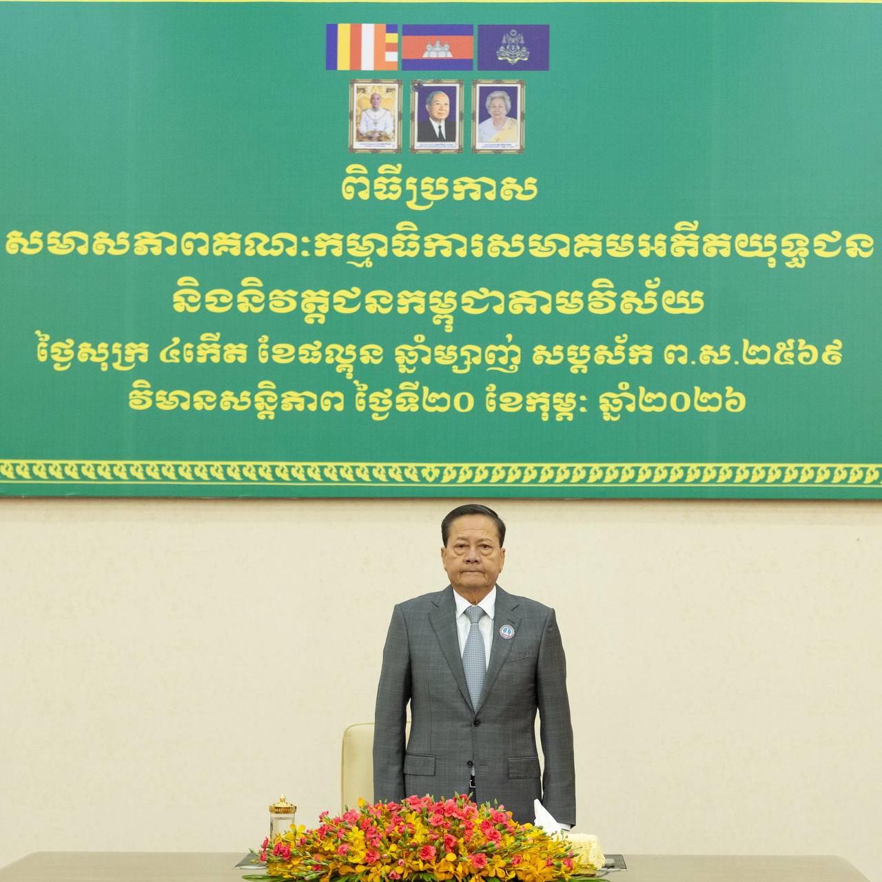នៅទីស្ដីការគណៈរដ្ឋមន្ដ្រី ព្រឹកថ្ងៃទី២០ ខែកុម្ភ: ឆ្នាំ២០២៦ ឯកឧត្តម ប្រាក់ សុខយូរ រដ្ឋលេខាធិការប្រចាំការ បានអញ្ជើញចូលរួម «ពិធីប្រកាសសមាសភាព ប្រគល់សេចក្តីសម្រេច និងត្រា ជូនគណៈកម្មាធិការសមាគមអតីតយុទ្ធជន និងនិវត្តជនកម្ពុជាតាមវិស័យ ចំនួន ៣២ ក្រសួង-ស្ថាបន័ ក្រោមអធិបតីភាពដ៏ខ្ពង់ខ្ពស់ ឯកឧត្តមសន្ដិបណ្ឌិត នេត សាវឿន នាយករដ្ឋមន្ដ្រីស្ដីទី និងជាអនុប្រធាន អ.ន.ក តំណាងដ៏ខ្ពង់ខ្ពស់ សម្ដេចអគ្គមហាសេនាបតីតេជោ ហ៊ុន សែន ប្រធានព្រឹទ្ធសភា នៃព្រះរាជាណាចក្រកម្ពុជា និងជាប្រធានសមាគមអតីតយុទ្ធជន និងនិវត្តជនកម្ពុជា ។