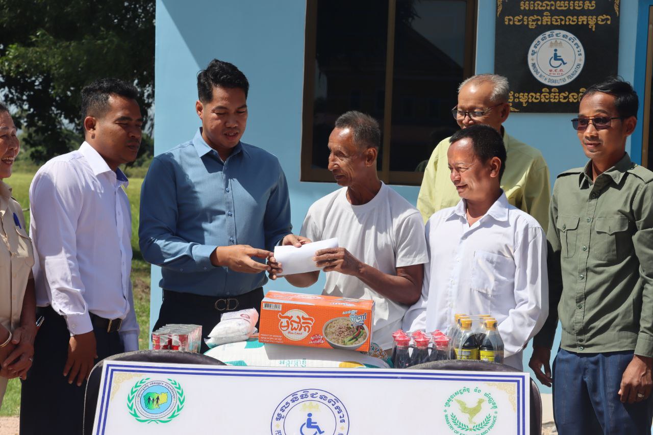 ពិធីនេះមានការចូលរួមពីលោក ឆាង ឆៃ អភិបាលនៃគណអភិបាលស្រុកដំណាក់ចង្អើរ លោកប្រធានសាខាមូលនិធិជនពិការខេត្តកែប លោកមេឃុំពងទឹក និងមន្រ្តីមូលដ្ឋានជាច្រើនរូប។