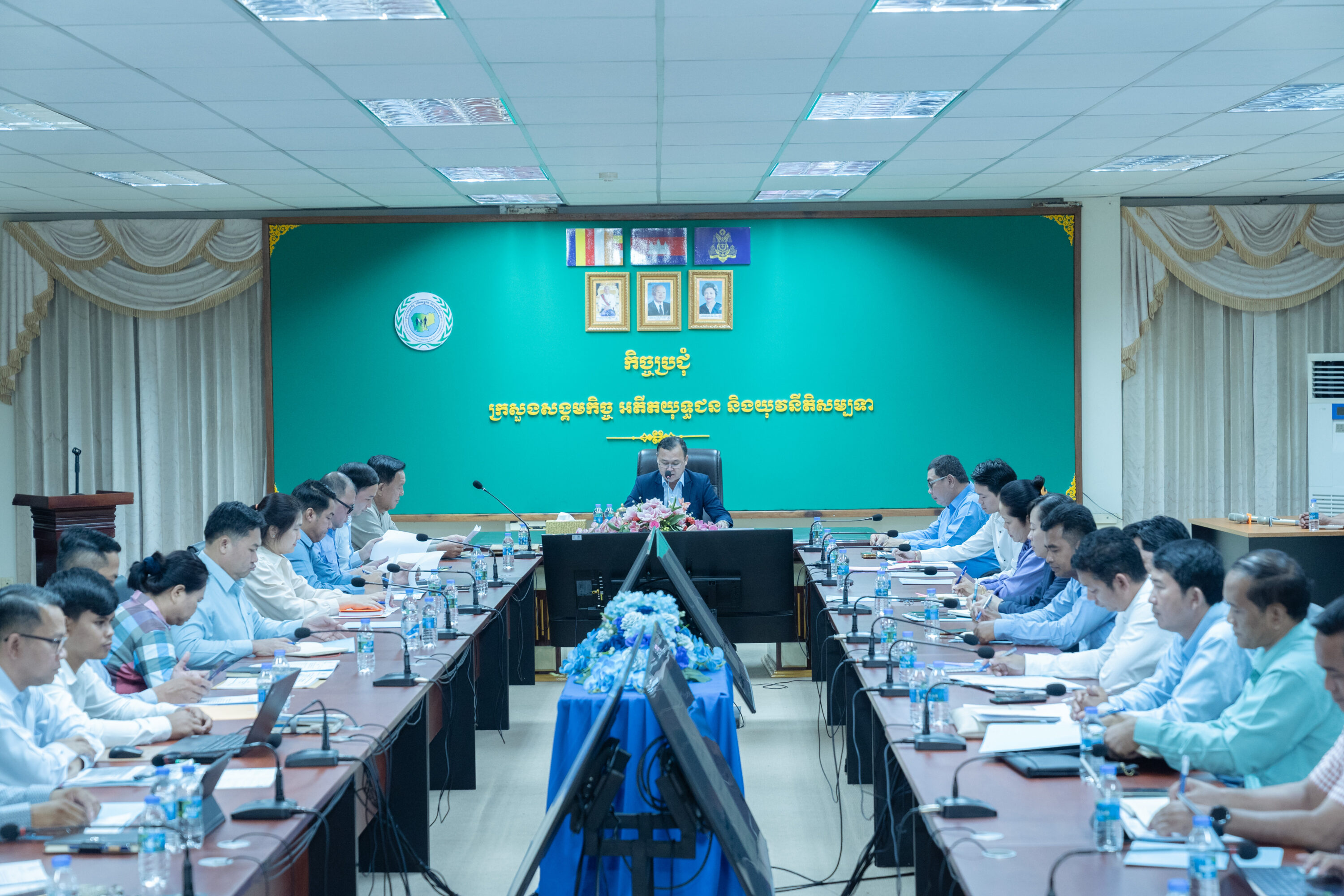 ទីស្ដីការក្រសួង ៖ នារសៀលថ្ងៃទី២១ ខែឧសភា ឆ្នាំ២០២៤ ឯកឧត្តម ប្រាក់ សុខយូរ រដ្ឋលេខាធិការប្រចាំការ នៃក្រសួងសង្គមកិច្ច អតីតយុទ្ធជន និងយុវនីតិសម្បទា បានអញ្ជើញដឹកនាំកិច្ចប្រជុំក្រុមការងារអនុវត្តបទបញ្ជាលេខ ០១ បប ស្ដីពីការដាក់ចេញវិធានការម៉ឺងម៉ាត់ក្នុងការប្រយុទ្ធប្រឆាំងគ្រឿងញៀនខុសច្បាប់ប្រចាំក្រសួងសង្គមកិច្ច អតីតយុទ្ធជន និងយុវនីតិសម្បទា ។