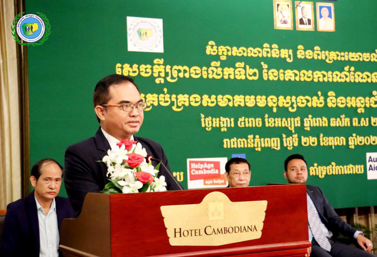 ឯកឧត្តម មុំ ប៊ុនថន រដ្ឋលេខាធិការ បានដឹកនាំបើកសិក្ខាសាលា ពិនិត្យនិងពិគ្រោះយោបល់លើសេចក្តីព្រាងលើកទី២ នៃគោលការណ៍ណែនាំស្តីពី ការបង្កើតនិងគ្រប់គ្រងសមាគមមនុស្សចាស់និងអន្តរជំនាន់-ពហុមុខងារ ដោយមានការចូលរួមពី ឯកឧត្តម អនុរដ្ឋលេខាធិការ ឯកឧត្តម អគ្គនាយក នៃអគ្គនាយកដ្ឋានគោលនយោបាយ លោកស្រី អគ្គនាយករងនៃអគ្គនាយកដ្ឋានសេវាសង្គមកិច្ច លោកប្រធាន នាយកដ្ឋានមនុស្សចាស់និងអតីតយុទ្ធជន លោក លោកស្រី តំណាងក្រសួងស្ថាប័នទាំង៣០,នាយកប្រតិបត្តិអង្គការមនុស្សចាស់កម្ពុជា និងសហការី លោកស្រីតំណាងកម្មវិធីអភិវឌ្ឍន៍សហប្រជាជាតិប្រចាំកម្ពុជា និងសហការី និងក្រុមការងារ នៃនាយកដ្ឋានមនុស្សចាស់ និងអតីតយុទ្ធជន។គោលបំណង៖ ប្រមូលធាតុចូលបន្ថែមលើសេចក្តីព្រាងលើកទី២ នៃគោលការណ៍ណែនាំស្តីពីការបង្កើតនិងគ្រប់គ្រងសមាគមមនុស្សចាស់និងអន្តរជំនាន់-ពហុមុខងារ៕