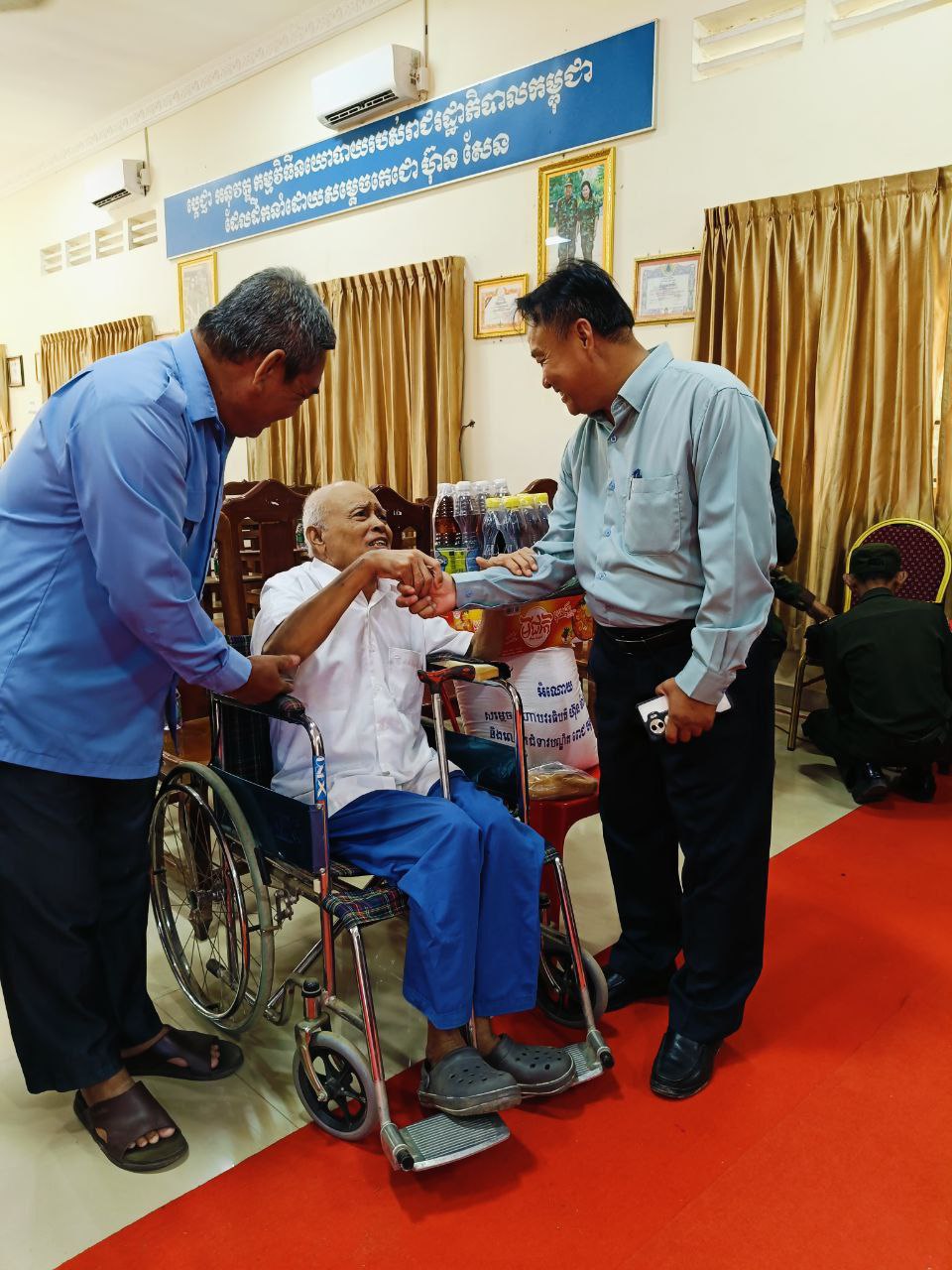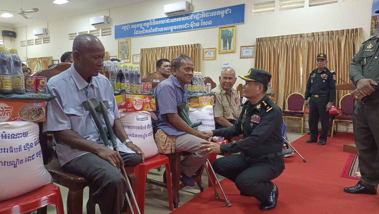 អំណោយរបស់ សម្ដេចមហាបវរធិបតី ហ៊ុន ម៉ាណែត នាយករដ្ឋមន្ត្រី នៃព្រះរាជាណាចក្រកម្ពុជា អនុប្រធានទី១ សមាគមអតីតយុទ្ធជនកម្ពុជា និងលោកជំទាវបណ្ឌិត ពេជ ចន្ទមុន្នី ហ៊ុន ម៉ាណែត ចែកជូនដល់អតីតយុទ្ធជន និងគ្រួសារកងទ័ពដែលមានជីវភាពខ្វះខាត ចំនួន ៦០នាក់ សរុបរួមមាន អង្ករ ចំនួន ១,៥០០គីឡូក្រាម ទឹកត្រី ៦០យួរ ទឹកស៊ីអ៊ី ៦០យួរ ត្រីខ ៦០យួរ មី ៦០កេះ មុង ៦០ និងថវិកាសរុប ៦លានរៀល “ប្រាំមួយលានរៀល”។