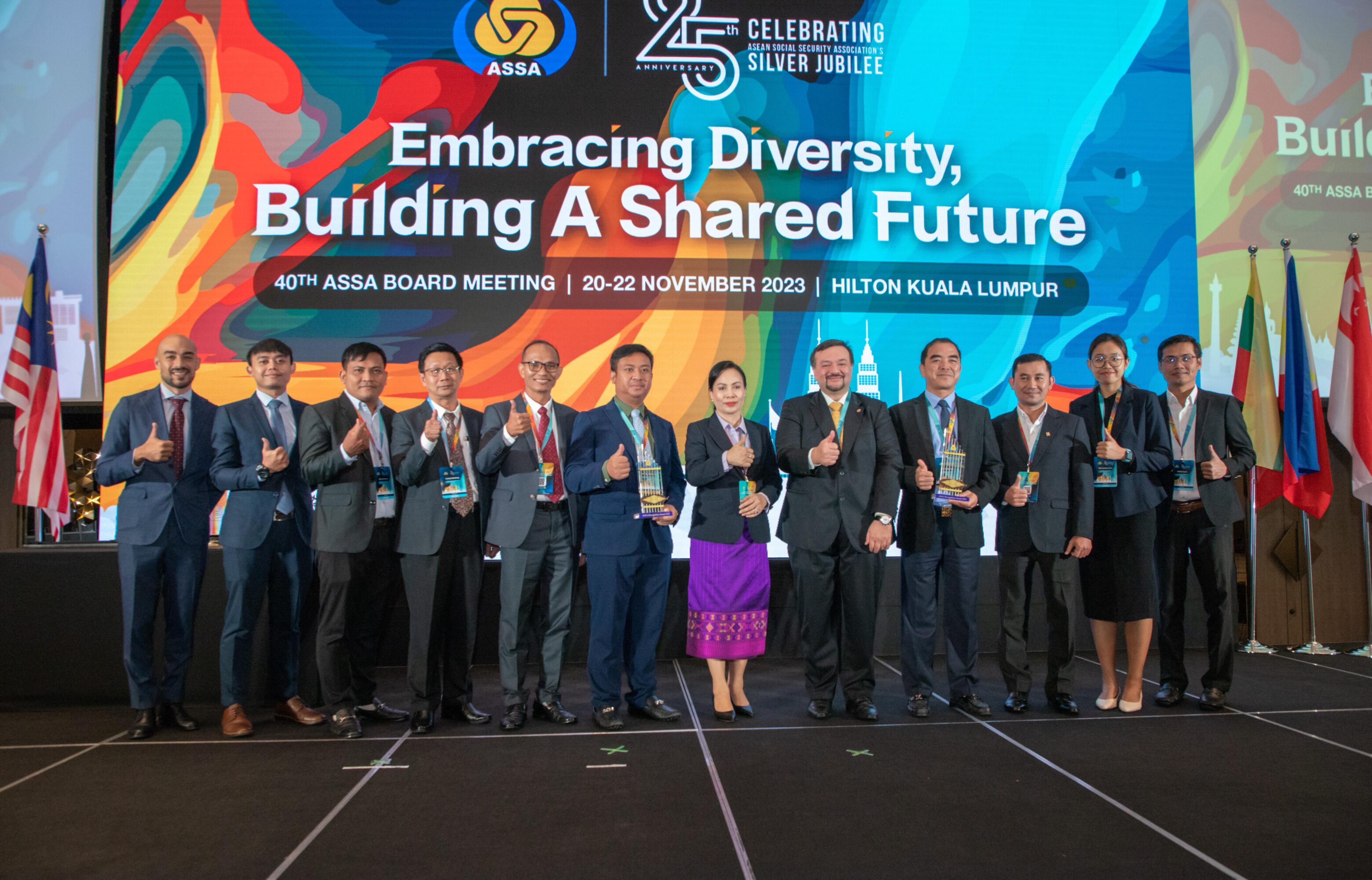 ទន្ទឹមនឹងនោះ ឯកឧត្តម និងគណ:ប្រតិភូបានបន្តចូលរួមក្នុងកិច្ចប្រជុំប្រឹក្សាភិបាលនៃសមាគមសន្តិសុខសង្គមអាស៊ាន (ASSA) លើកទី៤០ និងចូលរួមអបអរសាទរក្នុងឱកាសប្រារព្វខួបលើកទី២៥ នៃការបង្កើតសមាគមសន្តិសុខសង្គមអាស៊ាន នាថ្ងៃទី២១ ខែវិច្ឆិកា ឆ្នាំ២០២៣ ដែលបានប្រព្រឹត្តទៅនៅសណ្ឋាគារ Hilton Kuala Lumpur ទីក្រុងកូឡាឡាំពួ ប្រទេសម៉ាឡេស៊ី ដោយមានការចូលរួមពីតំណាងស្ថាប័នសន្តិសុខសង្គមនៃសមាគមសន្តិសុខសង្គមអាស៊ាន (ASSA) ចំនួន ២០ស្ថាប័ន មកពីបណ្តាប្រទេសអាស៊ានទាំង ១០។