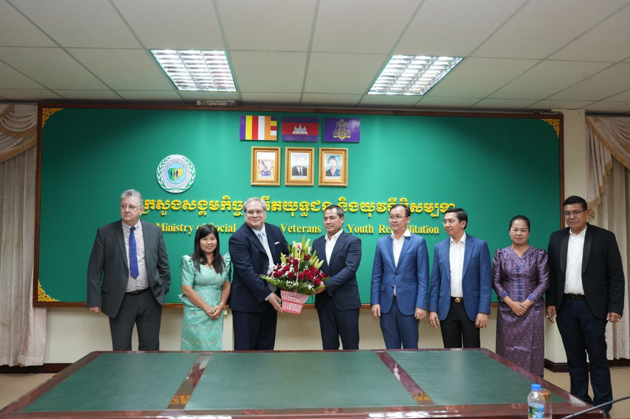ភ្នំពេញ៖ ឯកឧត្តម ជា សុមេធី រដ្ឋមន្ត្រីក្រសួងសង្គមកិច្ច អតីតយុទ្ធជន និង យុវនីតិសម្បទា បានអនុញ្ញាតឲ្យប្រតិភូអង្គការ Exceed Worldwide ដឹកនាំដោយលោកបណ្ឌិត Dr. David Boone ប្រធានក្រុមប្រឹក្សាភិបាល អង្គការ Excced Worldwide នៃអង្គការ ICRC និងសហការីចូលជួបសំដែងការគួរសមដើម្បីពិភាក្សាការងារ នៅរសៀលថ្ងៃព្រហស្បតិ៍ ទី២៣ ខែវិច្ឆិកា ឆ្នាំ២០២៣ នៅទីស្តីការក្រសួង។