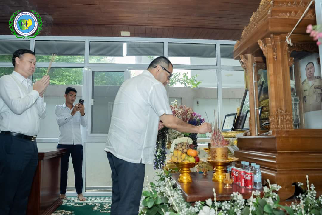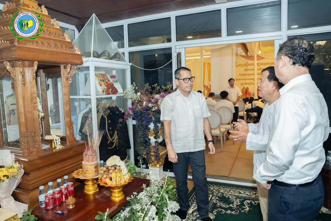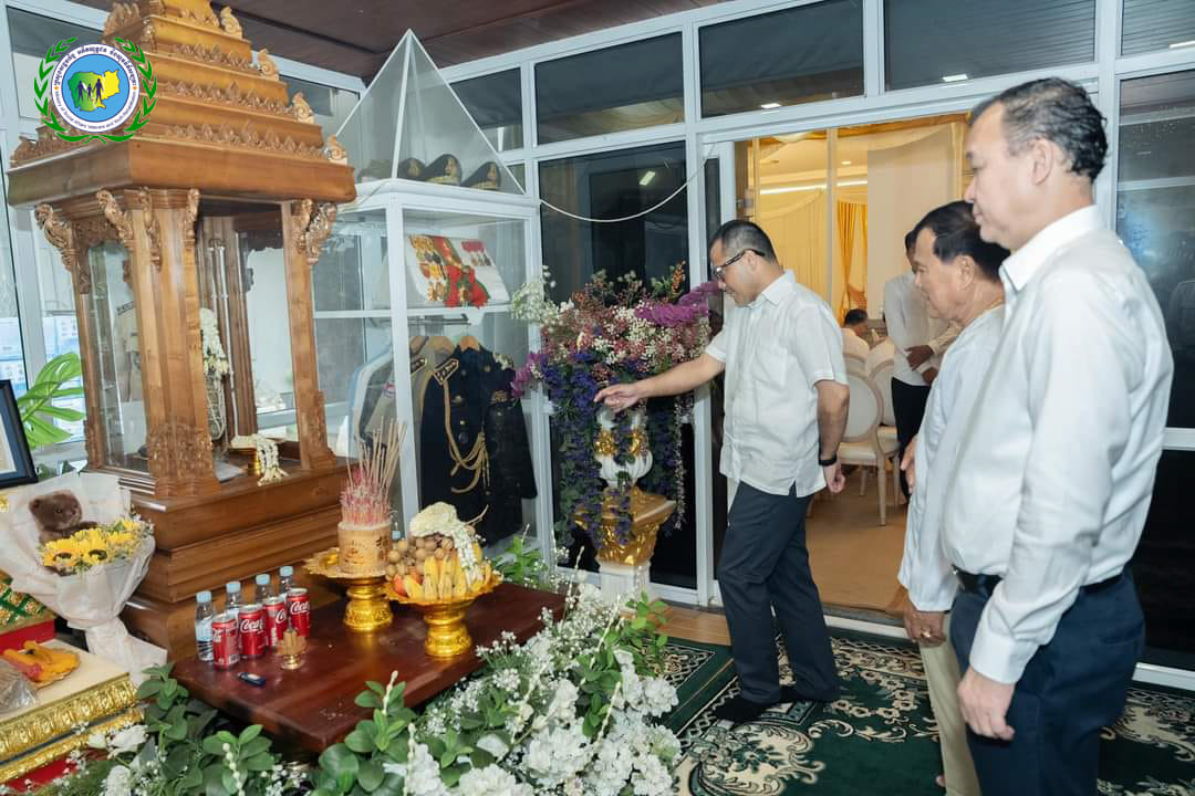 ព្រឹកថ្ងៃពុធ ២៣ តុលា ២០២៤ ៖ ឯកឧត្តម ជា សុមេធី រដ្ឋមន្ត្រីក្រសួងសង្គមកិច្ច អតីតយុទ្ធជន និងយុវនីតិសម្បទា បានអញ្ជើញចូលរួមពិធីបុណ្យទក្ខិណានុប្បទានគម្រប់ខួប២ឆ្នាំ ឧទ្ទិសកុសលជូន ដួងវិញ្ញាណក្ខន្ធ ឯកឧត្តម ឧត្តមសេនីយ៍ឯក សារ៉ាត ច័ន្ទវីរៈ ដែលត្រូវជាកូនបង្កើត ឯកឧត្តម ស្បោង សារ៉ាត់ ប្រធានក្រុមប្រឹក្សាខេត្តព្រៃវែង និងលោកជំទាវ។ បុរីប៉េងហួតបឹងស្នោរ រាជធានីភ្នំពេញ