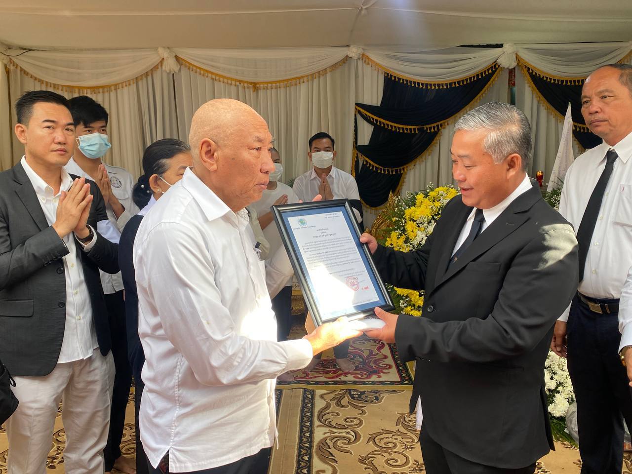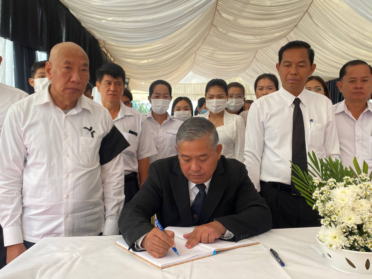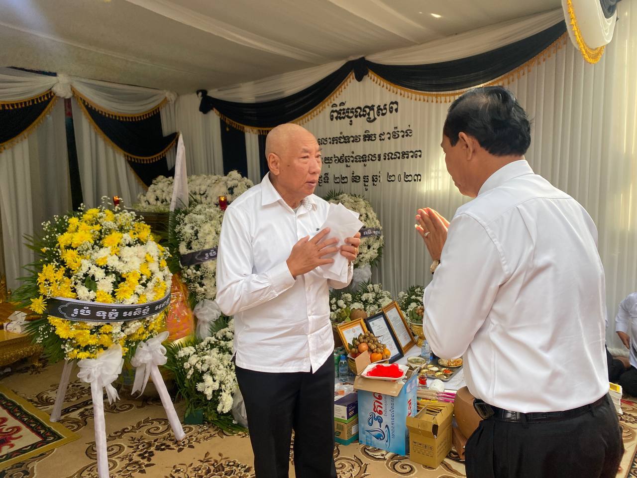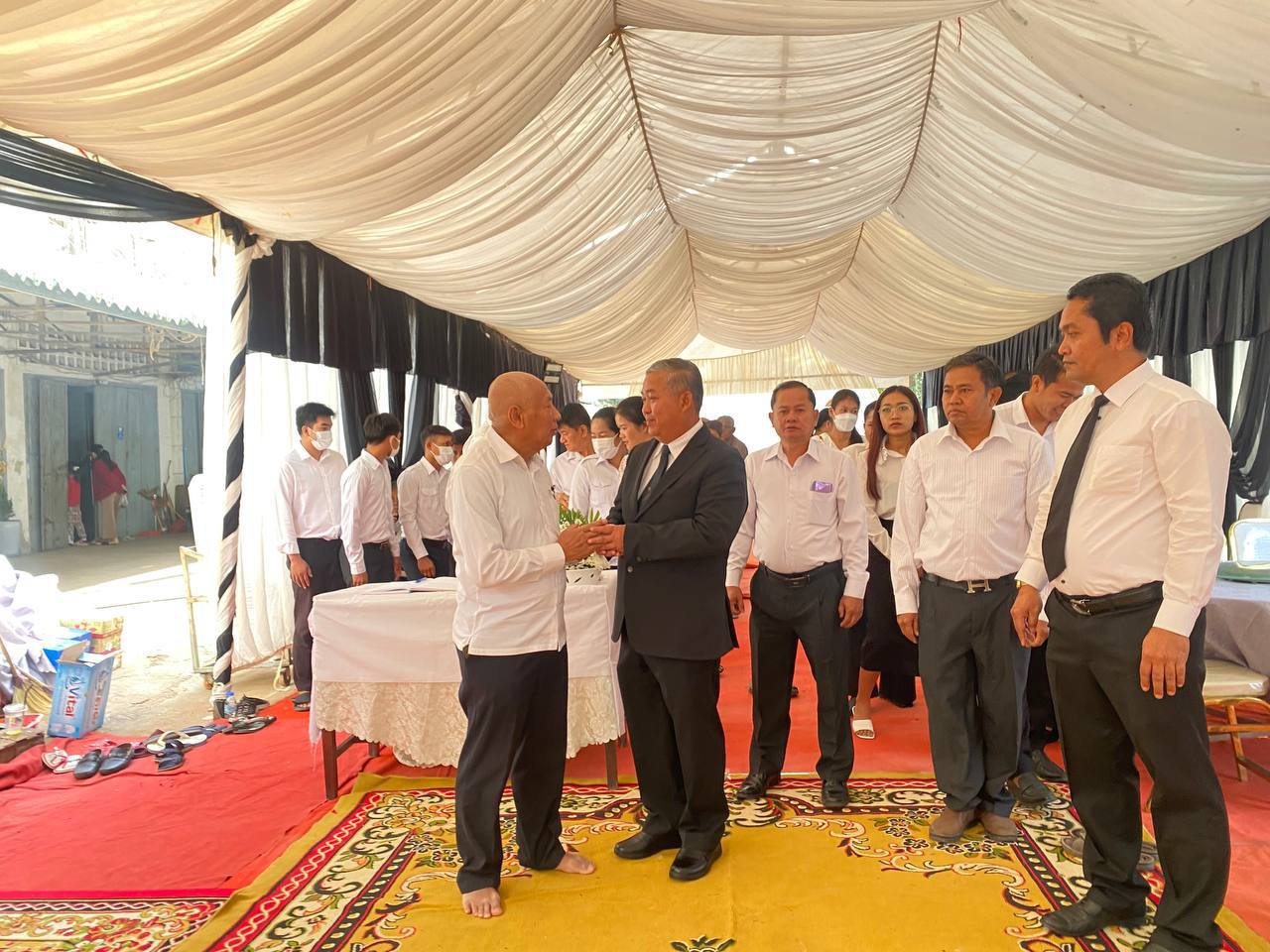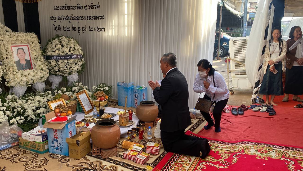 បន្ទាយមានជ័យ÷ នាព្រឹកថ្ងៃទី២៤ ខែធ្នូ ឆ្នាំ២០២៣ ឯកឧត្តម អុល រ៉ូ រដ្ឋលេខាធិការតំណាងដ៏ខ្ពង់ខ្ពស់ ឯកឧត្តម ជា សុមេធី រដ្ឋមន្ត្រីក្រសួងសង្គមកិច្ច អតីតយុទ្ធជន និងយុវនីតិសម្បទា អញ្ជើញគោរពវិញ្ញាណក្ខន្ធ លោកជំទាវ តិច ដាវ៉ាន់ ត្រូវជាភរិយា ឯកឧត្តម សួន សុធី រដ្ឋលេខាធិការក្រសួងសង្គមកិច្ច អតីតយុទ្ធជន និងយុវនីតិសម្បទា ដែលបានទទួលមរណៈភាពនៅថ្ងៃទី២២ ខែធ្នូ ឆ្នាំ២០២៣ ម៉ោង ០៧:៣០នាទីព្រឹក ដោយរោគាពាធ៕