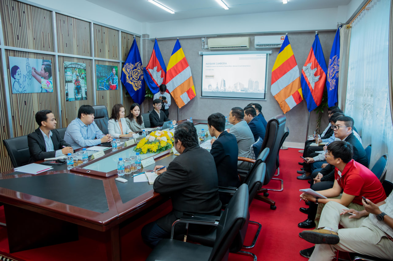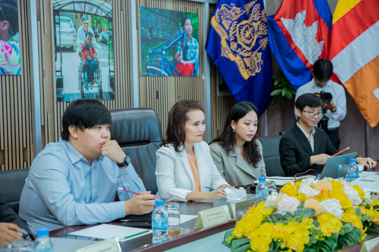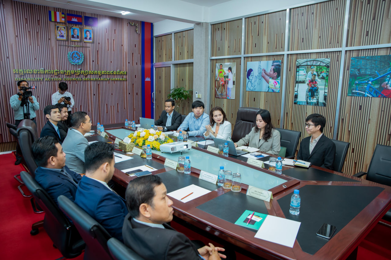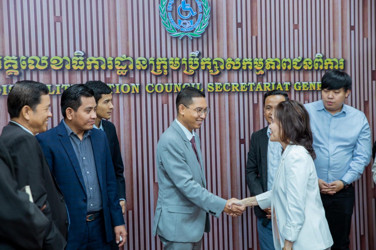 ភ្នំពេញ៖ រដ្ឋលេខាធិការ និងជាអគ្គលេខាធិការក្រុមប្រឹក្សាសកម្មភាពជនពិការ តំណាងដ៏ខ្ពង់ខ្ពស់ឯកឧត្តម ជា សុមេធី រដ្ឋមន្ត្រីក្រសួងសង្គមកិច្ច អតីតយុទ្ធជន និងយុវនីតិសម្បទា, ឯកឧត្តម ឯម ច័ន្ទមករា បានទទួលជួបពិភាក្សាការងារជាមួយនាយិកានាយកដ្ឋានគ្រប់គ្រងប្រតិបត្តិការនៃធនាគារ មេយប៊ែង May Bank លោកស្រី Qazreen Chan Abdullah នាព្រឹកថ្ងៃពុធ ទី២៥ ខែតុលា ឆ្នាំ២០២៣នៅទីស្ដីការក្រសួងសង្គមកិច្ច ដើម្បីរកលទ្ធភាពក្នុងការជួយដល់ជនមានពិការភាពនៅកម្ពុជា។