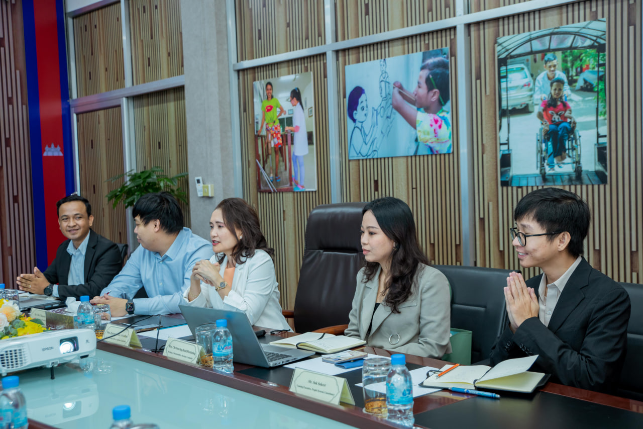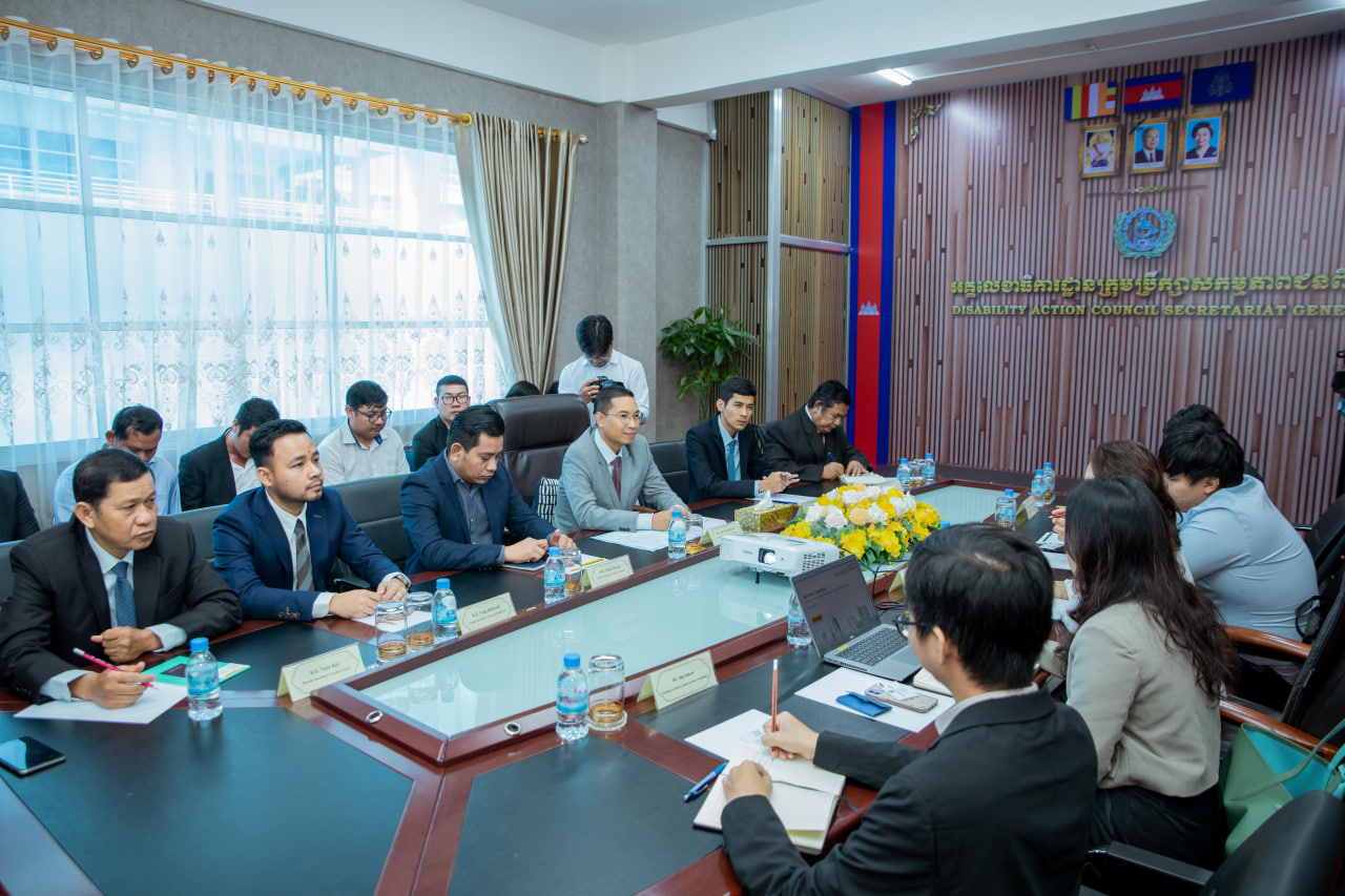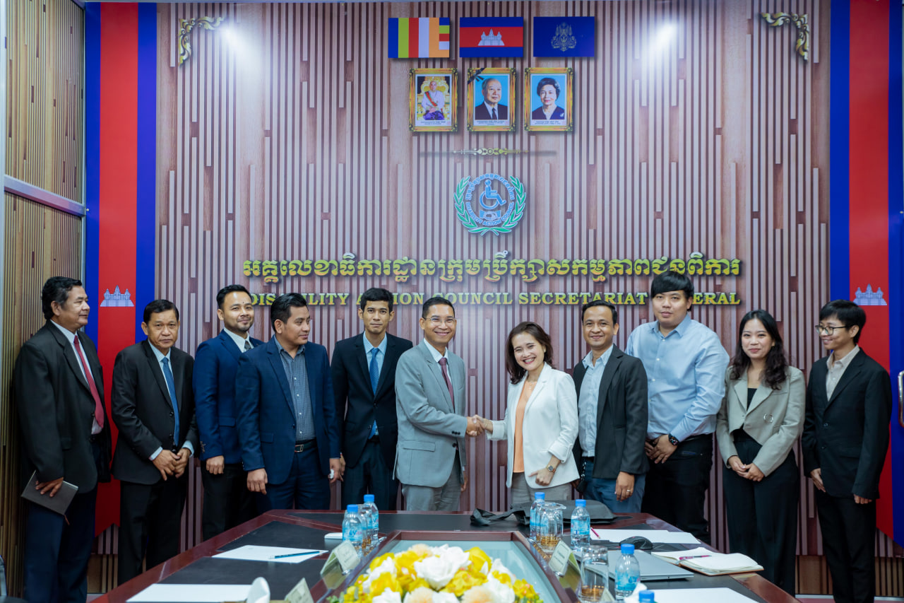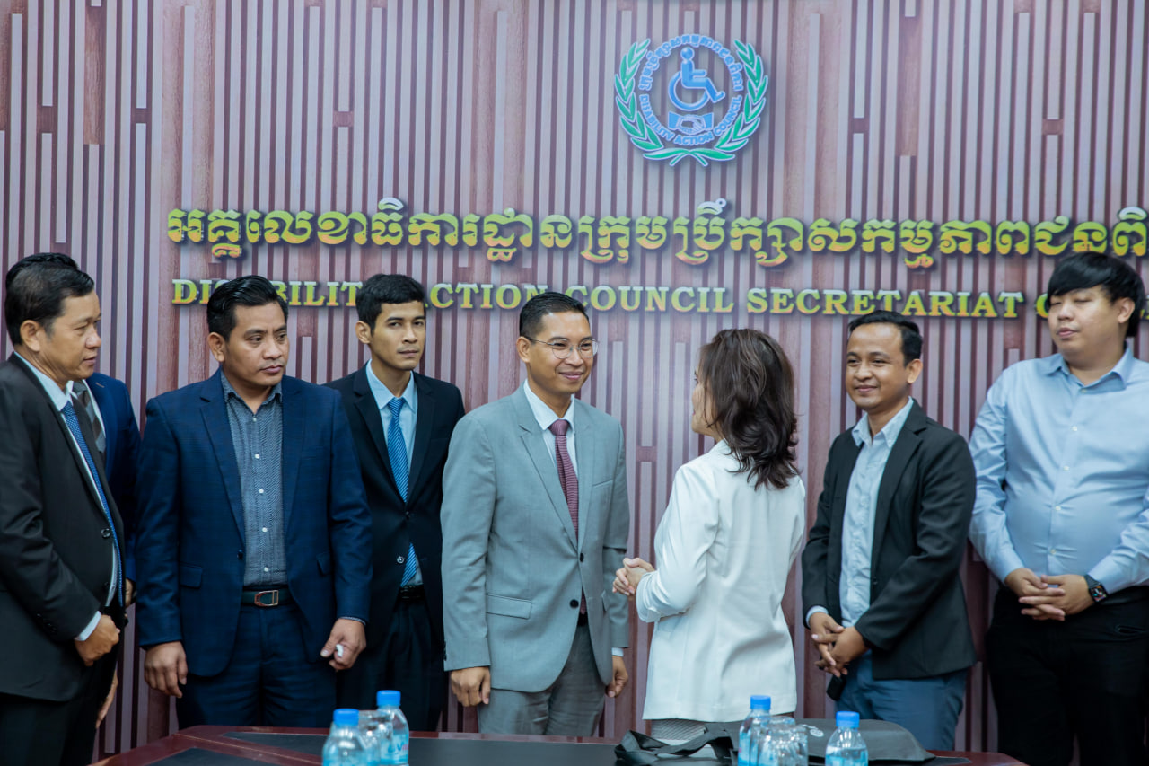 ភ្នំពេញ៖ រដ្ឋលេខាធិការ និងជាអគ្គលេខាធិការក្រុមប្រឹក្សាសកម្មភាពជនពិការ តំណាងដ៏ខ្ពង់ខ្ពស់ឯកឧត្តម ជា សុមេធី រដ្ឋមន្ត្រីក្រសួងសង្គមកិច្ច អតីតយុទ្ធជន និងយុវនីតិសម្បទា, ឯកឧត្តម ឯម ច័ន្ទមករា បានទទួលជួបពិភាក្សាការងារជាមួយនាយិកានាយកដ្ឋានគ្រប់គ្រងប្រតិបត្តិការនៃធនាគារ មេយប៊ែង May Bank លោកស្រី Qazreen Chan Abdullah នាព្រឹកថ្ងៃពុធ ទី២៥ ខែតុលា ឆ្នាំ២០២៣នៅទីស្ដីការក្រសួងសង្គមកិច្ច ដើម្បីរកលទ្ធភាពក្នុងការជួយដល់ជនមានពិការភាពនៅកម្ពុជា។
