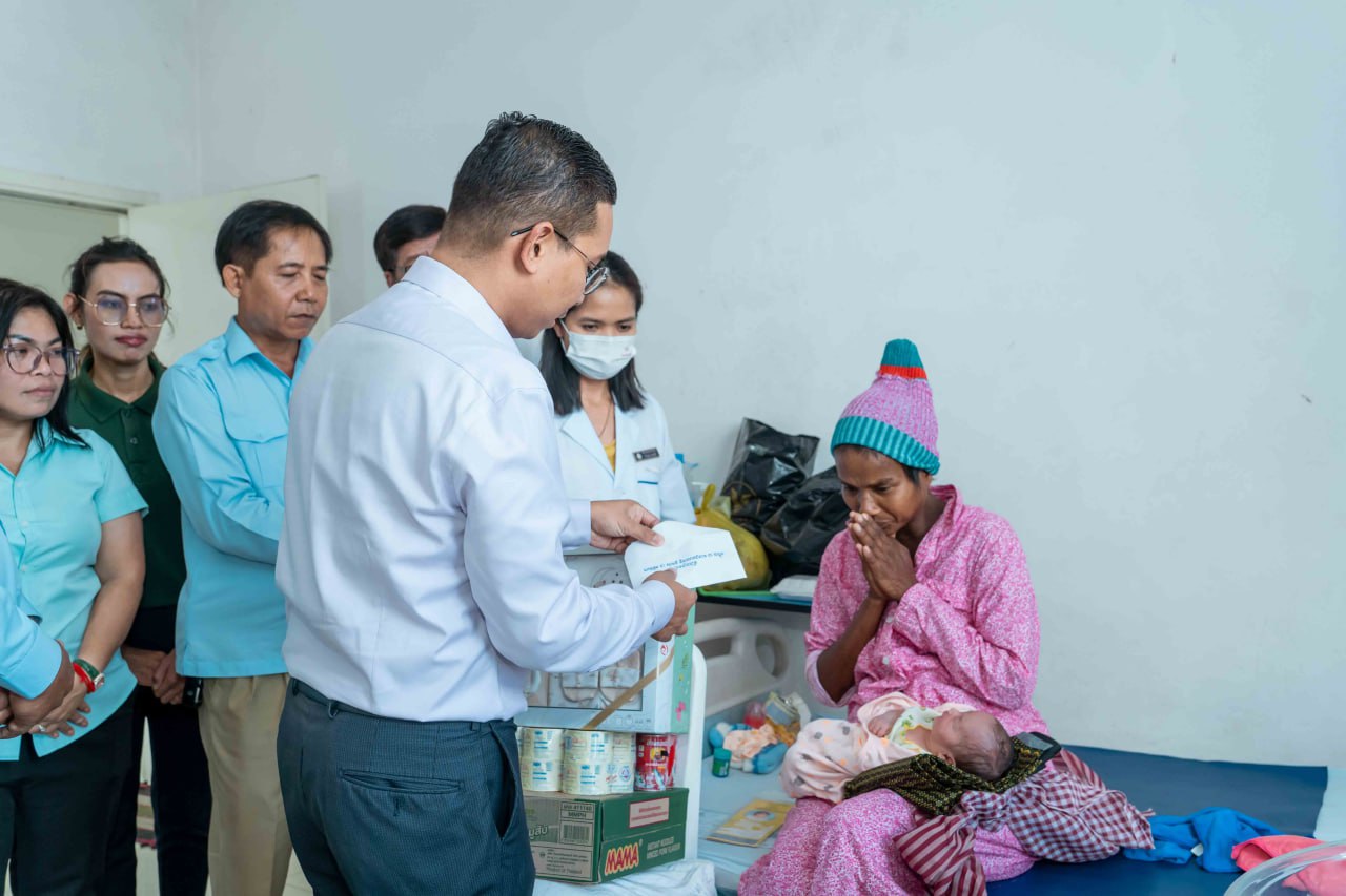 ភ្នំពេញ៖ នៅថ្ងៃព្រហស្បតិ៍ ទី២៦ ខែតុលា ឆ្នាំ២០២៣នេះឯកឧត្តម ឯម ច័ន្ទមករា រដ្ឋលេខាធិការក្រសួងសង្គមកិច្ច អតីតយុទ្ធជន និងយុវនីតិសម្បទា និងជាអគ្គលេខាធិការក្រុមប្រឹក្សាសកម្មភាពជនពិការ បានអញ្ជើញចុះសួរសុខទុក្ខដោយផ្ទាល់ដល់អ្នកស្រី ផុន សូនី ដែលបានសម្រាលកូនតាមដងផ្លូវដែលកំពុងសម្រាកព្យាបាលនៅមន្ទីរពេទ្យបង្អែកចតុម្មុខ ក្នុងរាជធានីភ្នំពេញ។