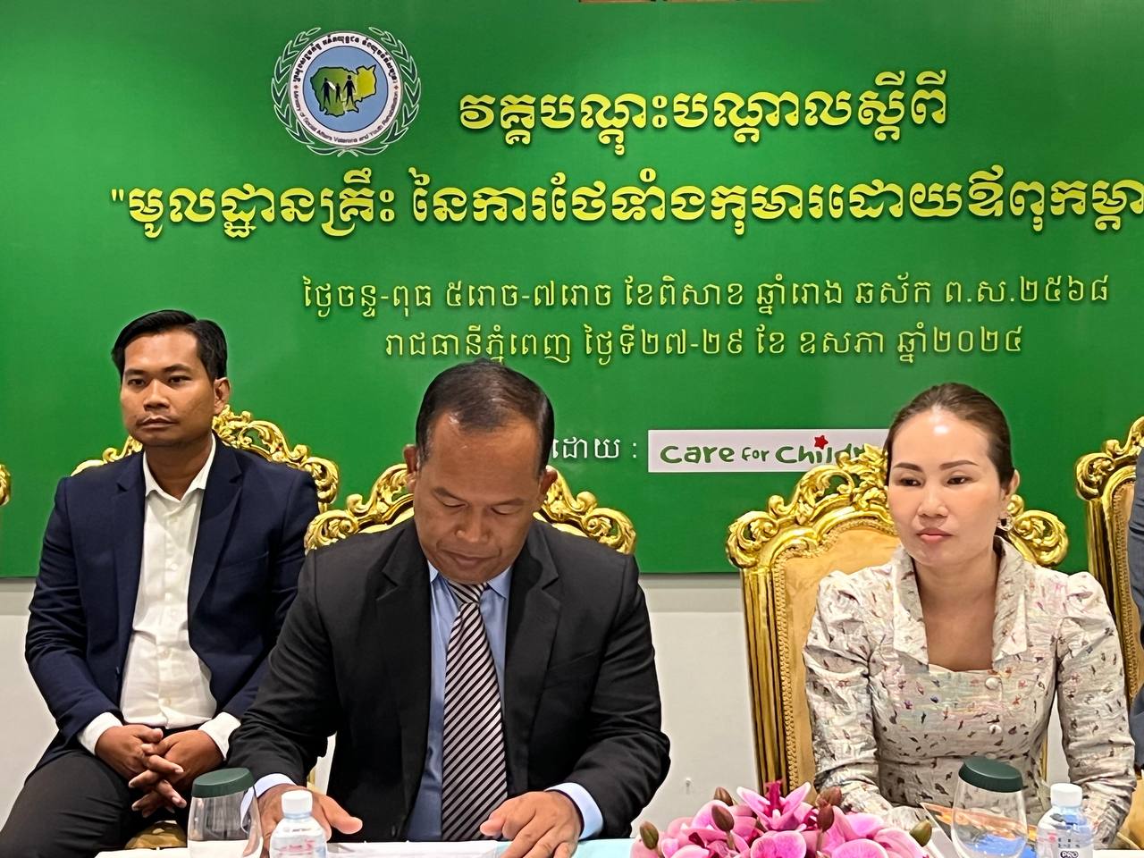 រាជធានីភ្នំពេញ ៖ ព្រឹកថ្ងៃចន្ទ ៥រោច ខែពិសាខ ឆ្នាំរោង ឆស័ក ព.ស. ២៥៦៨ ត្រូវនឹងថ្ងៃទី២៧ ខែឧសភា ឆ្នាំ២០២៤ ដោយទទួលបានការអនុញ្ញាតដ៏ខ្ពង់ខ្ពស់ពីឯកឧត្តម ជា សុមេធី រដ្ឋមន្ត្រីក្រសួងសង្គមកិច្ច អតីតយុទ្ធជន និងយុវនីតិសម្បទា ឯកឧត្តម ឌីន បូរី អគ្គនាយកសេវាសង្គមកិច្ច បានអញ្ជើញជាអធិបតីក្នុងពិធីបើកវគ្គបណ្ដុះបណ្ដាលស្តីពីមូលដ្ឋានគ្រឹះនៃការថែទាំកុមារដោយឪពុកម្ដាយធម៌ ក្រោមគម្រោងអភិវឌ្ឍការទុកដាក់កុមារក្នុងគ្រួសារនៅកម្ពុជា របស់ក្រសួង ស.អ.យ សហប្រតិបត្តិការជាមួយនឹងអង្គការ Care For Children នៅសណ្ឋាគារបៃតង និងរីស៊ត ដោយមានការចូលរួមពីលោកជំទាវប្រធាន គ.ក.ស.ក រាជធានីភ្នំពេញ នៃក្រុមប្រឹក្សារាជធានីភ្នំពេញ លោក អនុប្រធាននាយកដ្ឋានកិច្ចការពារកុមារ និងលោក លោកស្រីប្រធានការិយាល័យនៃនាយកដ្ឋានកិច្ចការពារកុមារ និងលោកអនុប្រធានមន្ទីរ និងមន្រ្តីបង្គោលនៃមន្ទីរសង្គមកិច្ច អតីតយុទ្ធជន និងយុវនីតិសម្បទា រាជធានីភ្នំពេញ ព្រមទាំងមន្ត្រីបង្គោលនៃការិយាល័យសង្គមកិច្ច និងសុខុមាលភាពសង្គម ខណ្ឌទាំង១៤ សរុបអ្នកចូលរួមចំនួន៤៥រូប។