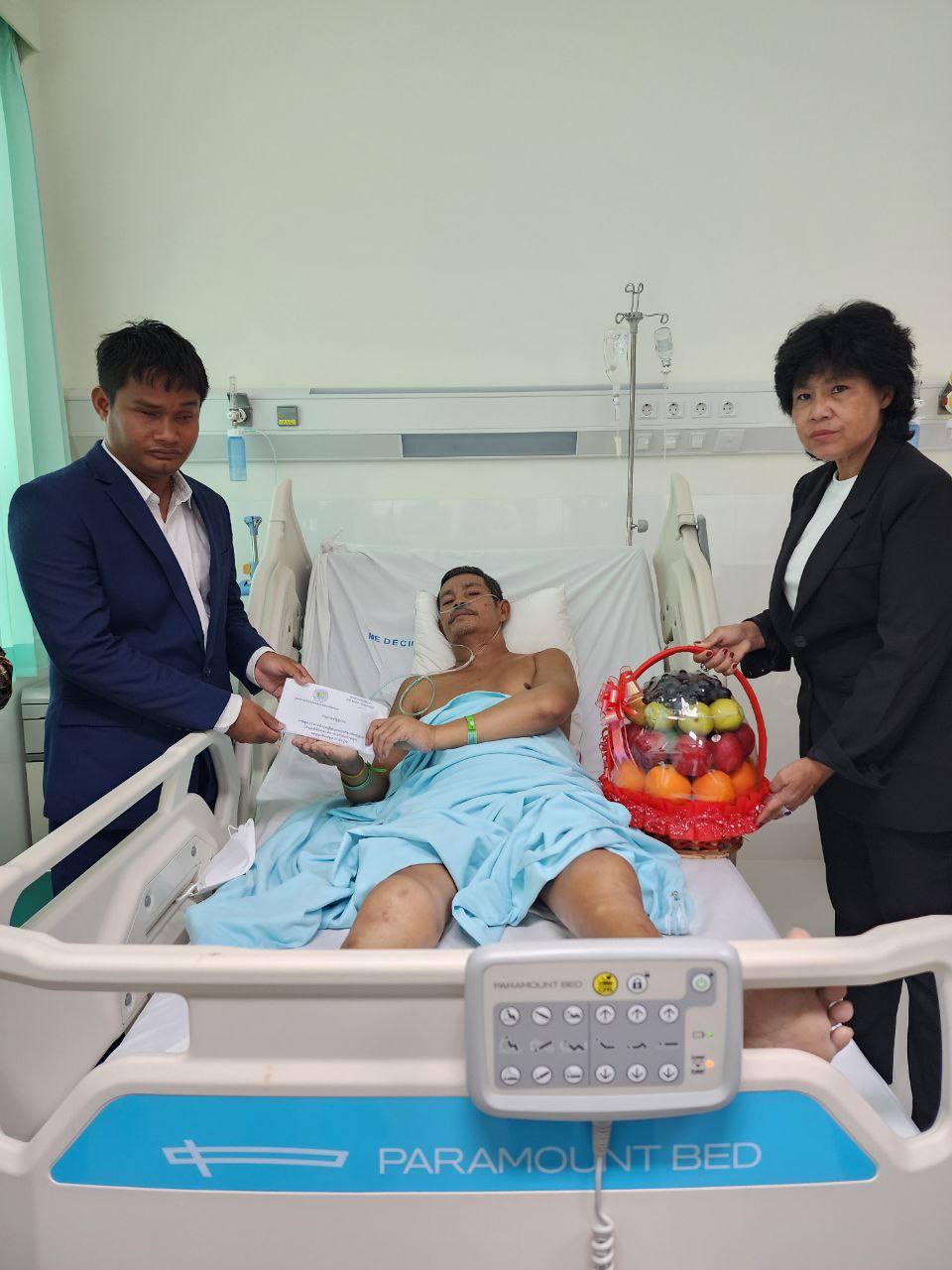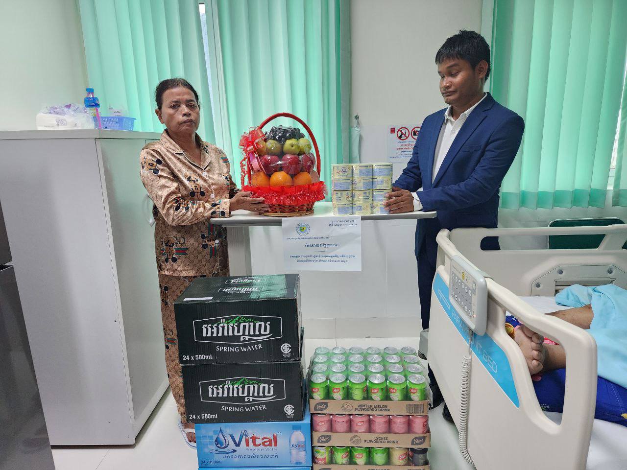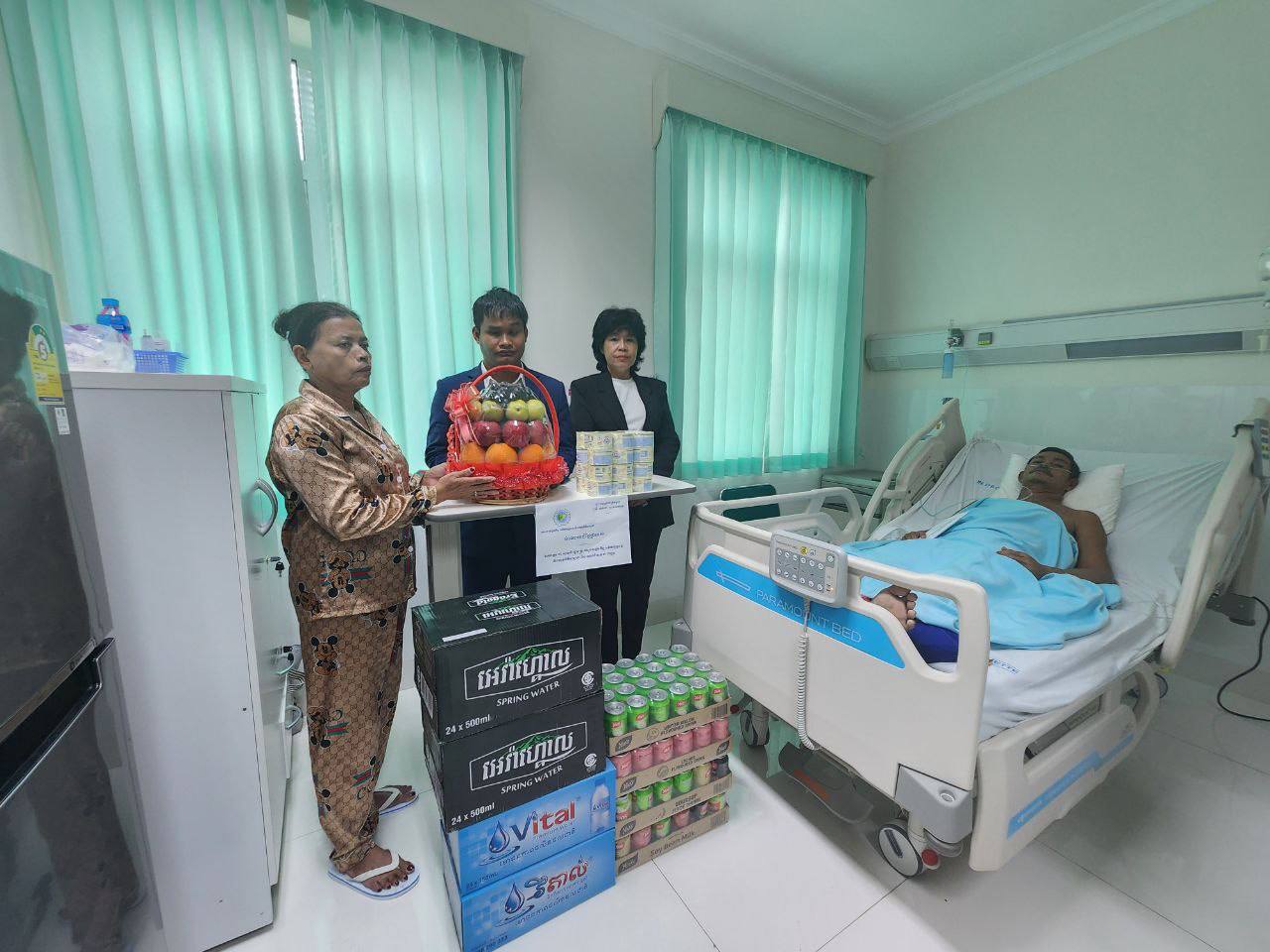 រាជធានីភ្នំពេញ ៖ នាព្រឹកថ្ងៃទី២៨ ខែមីនា ឆ្នាំ២០២៤ ដោយមានការណែនាំ និងអនុញ្ញាតដ៏ខ្ពង់ខ្ពស់ពី ឯកឧត្តម ជា សុមេធី រដ្ឋមន្រ្តីក្រសួងសង្គមកិច្ច អតីតយុទ្ធជន និងយុវនីតិសម្បទា ឯកឧត្តម ចាប តូ អនុរដ្ឋលេខាធិការ និងលោកជំទាវ ញ៉ែម មរកត រដ្ឋលេខាធិការក្រសួងកិច្ចការនារី និងជាប្រធានកិត្តិយសសមាគមតន្ត្រីសំនៀងជនពិការ បានដឹកនាំក្រុមការងារនៃសមាគមតន្ត្រីសំនៀងជនពិការ ចុះសួរសុខទុក្ខ លោក សៅ សាខន អតីតយោធិនមានពិការភាព (អង្គភាពកងវិស្វកម្មកម្ពុជា) ដែលកំពុងសម្រាកព្យាបាលជំងឺនៅមន្ទីរពេទ្យកាល់ម៉ែត ដោយមានការជួយអន្តរាគមន៍ដោយផ្ទាល់ពី ឯកឧត្តម ជា សុមេធី រដ្ឋមន្ត្រីក្រសួងសង្គមកិច្ច អតីតយុទ្ធជន និងយុវនីតិសម្បទា។