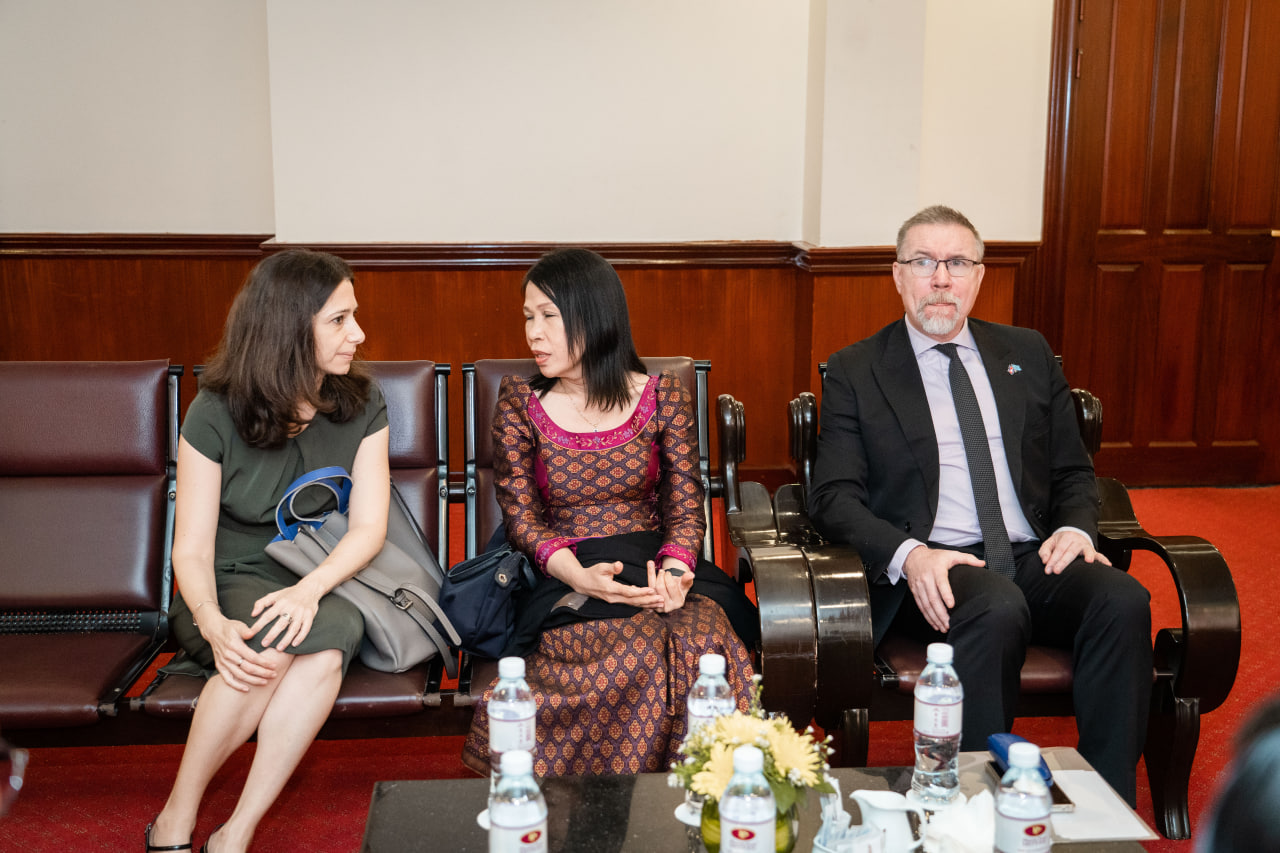 ភ្នំពេញ៖ រដ្ឋមន្ត្រីក្រសួងសង្គមកិច្ច អតីតយុទ្ធជន និងយុវនីតិសម្បទា ឯកឧត្តម ជា សុមេធី និងឯកអគ្គរដ្ឋទូតសហភាពអឺរ៉ុបប្រចាំកម្ពុជា ឯកឧត្តម Igor Driesmans បានជួបពិភាក្សាគ្នាមុនកម្មវិធីប្រកាសដាក់ឱ្យប្រើប្រាស់ «បណ្ណសម្គាល់ជនមានពិការភាព» ដល់ជនមានពិការភាព នាព្រឹកថ្ងៃទី៣០ ខែតុលា ឆ្នាំ២០២៣ នៅសណ្ឋាគារភ្នំពេញ។ ភាគីទាំងពីរសង្ឃឹមរួមគ្នាថា វិស័យមានពិការភាពនៅកម្ពុជានឹងមានការយកចិត្តទុកដាក់បន្ថែមទៀត។
