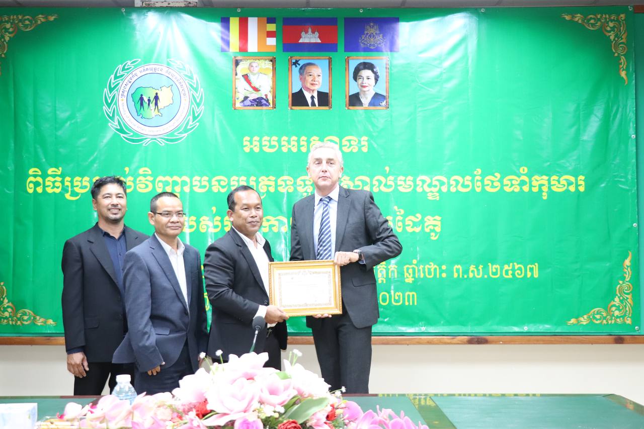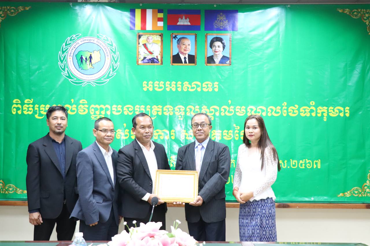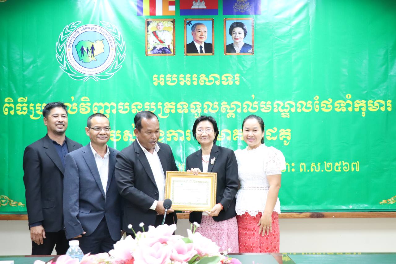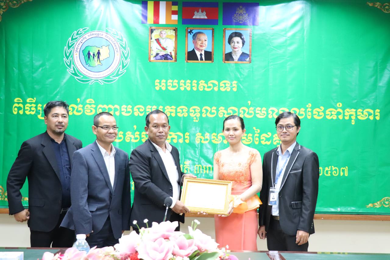 រាជធានីភ្នំពេញ÷ ថ្ងៃព្រហស្បតិ៍ ទី៣០ ខែវិច្ឆិកា ឆ្នាំ២០២៣ នាយកដ្ឋានកិច្ចការពារកុមារ បានរៀបចំពិធីអបអរសាទរប្រគល់វិញ្ញាបនបត្រទទួលស្គាល់មណ្ឌលថែទាំកុមារ ក្រោមអធីបតីភាព ឯកឧត្តម ឌីន បូរី អគ្គនាយកសេវាសង្គមកិច្ច នៃក្រសួងសង្គមកិច្ច អតីតយុទ្ធជន និងយុវនីតិសម្បទា។
