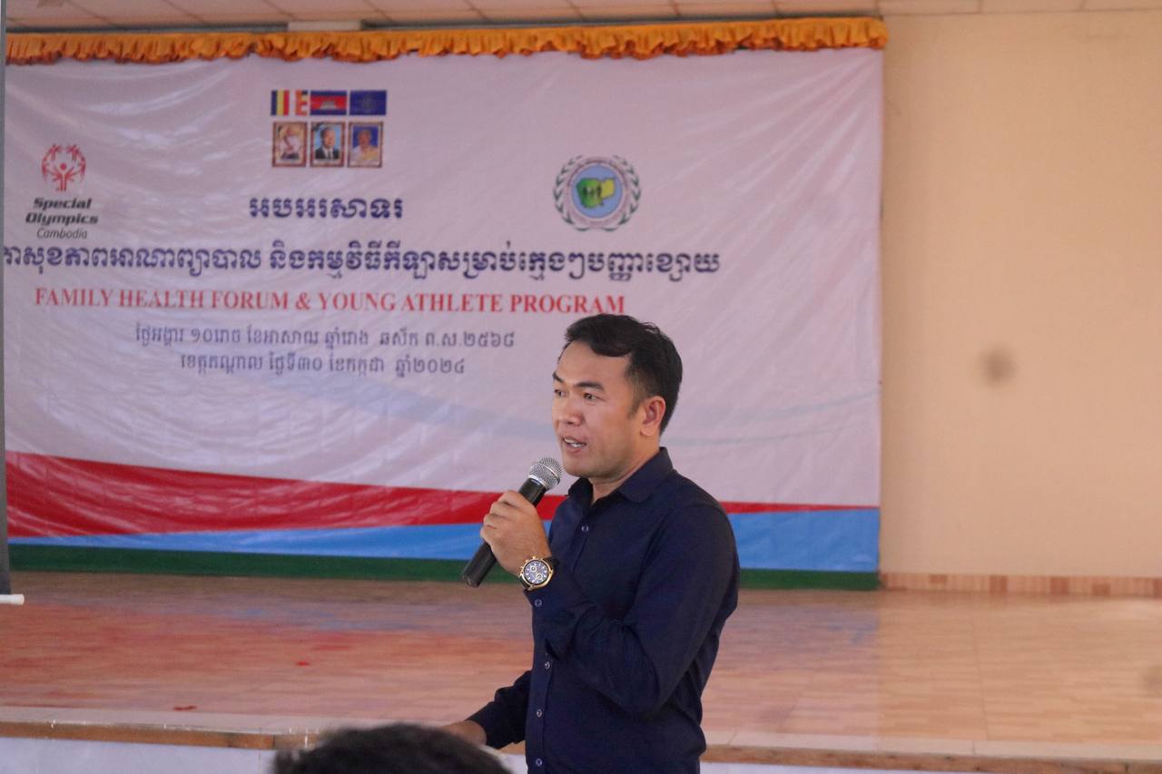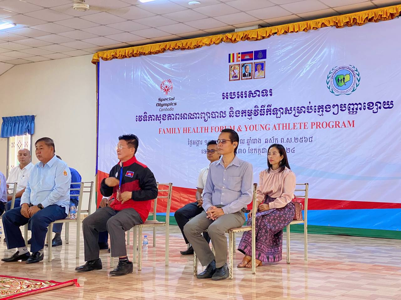 ខេត្តកណ្តាល៖ នាព្រឹកថ្ងៃអង្គារ ១០ រោច ខែអាសាឍ ឆ្នាំរោង ឆស័ក ព.ស. ២៥៦៨ ត្រូវនឹងថ្ងៃទី៣០ ខែកក្កដា ឆ្នាំ២០២៤ ឯកឧត្តម សែម សុខា រដ្ឋលេខាធិការ និងជាអនុប្រធានគណៈកម្មាធិការជាតិស្ប៉េស្យាល់អូឡាំពិកកម្ពុជា តំណាងដ៏ខ្ពង់ខ្ពស់ឯកឧត្តម ជា សុមេធី រដ្ឋមន្ត្រីក្រសួងសង្គមកិច្ច អតីតយុទ្ធជន និងយុវនីតិសម្បទា ប្រធានគណៈកម្មាធិការជាតិស្ប៉េស្យាល់អូឡាំពិកកម្ពុជា អញ្ជើញជាអធិបតីក្នុងពិធីបើកវេទិកាសុខភាព និងកម្មវិធីកីឡាសម្រាប់ក្មេងៗអាយុ ២ ទៅ ៧ ឆ្នាំ បញ្ញាខ្សោយ នៅក្រុងតាខ្មៅ ខេត្តកណ្តាល សមាសភាពចូលរួម មានអភិបាលរង នៃគណៈអភិបាលខេត្តកណ្តាល អគ្គលេខាធិការគណ:កម្មាធិការជាតិស្ប៉េស្យាល់អូឡាំពិកកម្ពុជា នាយកវិទ្យាល័យអប់រំពិសេស លោកវេជ្ជបណ្ឌិត ព្យាបាលមន្ទីរពេទ្យមិត្តភាព កម្ពុជាព្រះកុសម: ព្រឹទ្ធបុរសមហាវិទ្យាល័យទន្តវទនសាស្ត្រ សកលវិទ្យល័យពុទ្ធិសាស្រ្ត និងអាណាព្យាបាលកុមារបញ្ញាខ្សោយ សរុបប្រហែល១០០នាក់ នៅសាលាគរុកោសល្យ និងវិក្រិត្យការ ខេត្តកណ្តាល។