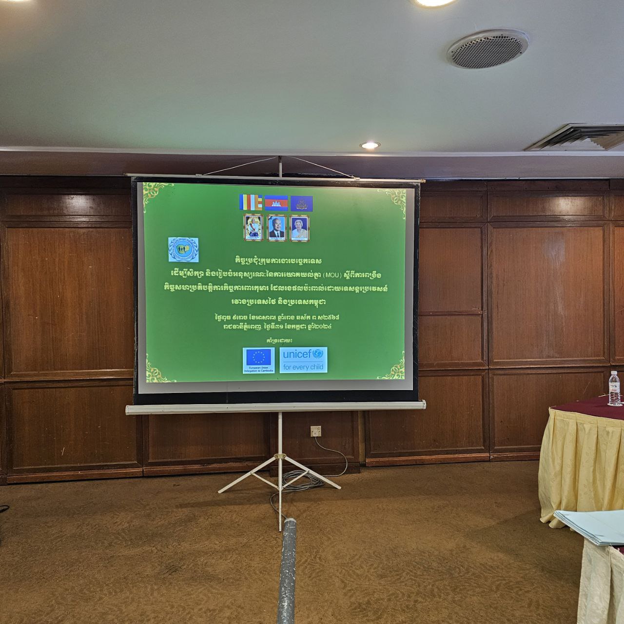 រាជធានីភ្នំពេញ៖ នៅព្រឹកថ្ងៃពុធ១១ រោច ខែអាសាឍ ឆ្នាំរោង ឆស័ក ព.ស.២៥៦៨ ត្រូវនឹងថ្ងៃទី៣១ ខែកក្កដា ឆ្នាំ២០២៤ ឯកឧត្តម ឌីន បូរី អគ្គនាយក នៃអគ្គនាយកដ្ឋានសេវាសង្គមកិច្ច បានអញ្ជើញដឹកនាំ កិច្ចប្រជុំក្រុមការងារបច្ចេកទេស ដើម្បីសិក្សា និងរៀបចំអនុស្សរណៈយោគយល់គ្នា (MOU) ស្តីពីការពង្រឹងកិច្ចសហប្រតិបត្តិការកិច្ចការពារកុមារដែលរងផលប៉ះពាល់ដោយទេសន្តប្រវេសន៍រវាងប្រទេសថៃ និងប្រទេសកម្ពុជា នៅសណ្ឋាគារសាន់វ៉េ ភ្នំពេញ ដែលមានសមាសភាពចូលរួម មកពីខាងក្រសួងស្ថាប័ន និងអង្គការពាក់ព័ន្ធ សរុបចំនួន ៣៦ នាក់ ស្រី១១ នាក់។