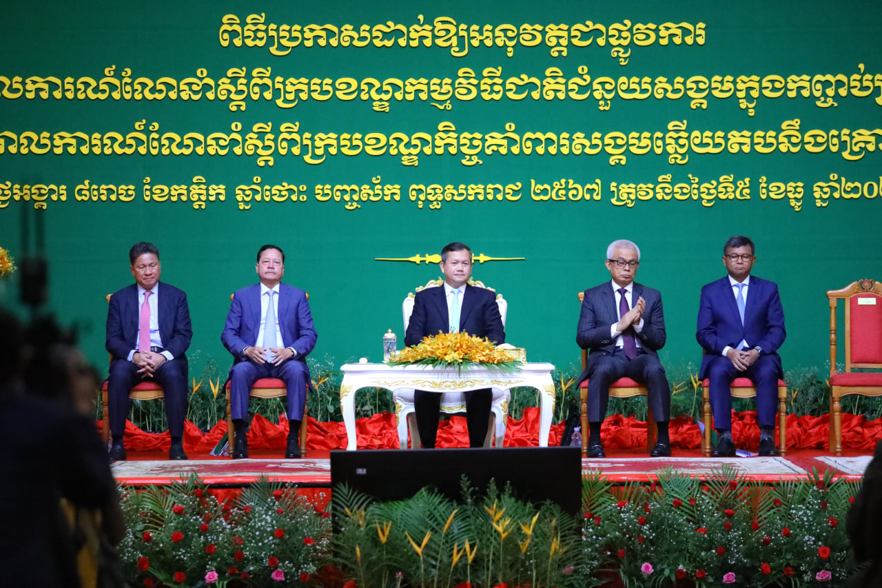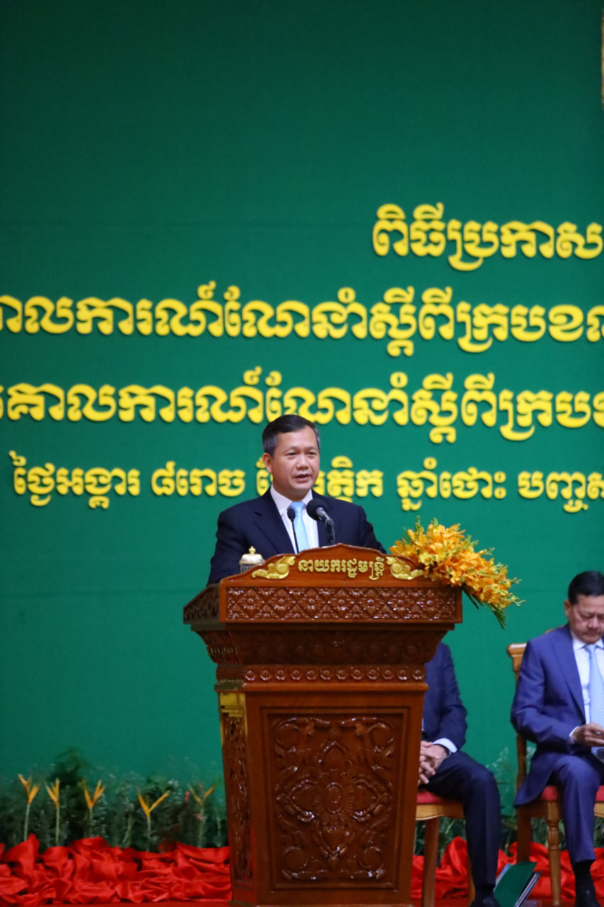 សម្តេចមហាបវរធិបតី ហ៊ុន ម៉ាណែត នាយករដ្ឋមន្រ្តី នៃព្រះរាជាណាចក្រកម្ពុជា អញ្ជើញជាអធិបតីដ៏ខ្ពង់ខ្ពស់ក្នុងពិធីប្រកាសដាក់ឱ្យអនុវត្តជាផ្លូវការ «គោលការណ៍ណែនាំស្ដីពីក្របខណ្ឌកម្មវិធីជាតិជំនួយសង្គមក្នុងកញ្ចប់គ្រួសារ» និង «គោលការណ៍ណែនាំស្ដីពីក្របខណ្ឌកិច្ចគាំពារសង្គមឆ្លើយតបនឹងគ្រោះអាសន្ន » រៀបចំឡើងនៅសណ្ឋាគារសុខាភ្នំពេញ ។
