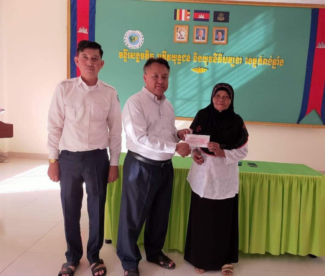 កំពង់ឆ្នាំង÷ នៅព្រឹកថ្ងៃចន្ទ ទី០៦ ខែវិច្ឆិកា ឆ្នាំ២០២៣ លោក ឈាង ចន្ធី ប្រធានមន្ទីរសង្គមកិច្ច អតីតយុទ្ធជន និងយុវនីតិសម្បទាខេត្តកំពង់ឆ្នាំង តំណាងដ៏ខ្ពង់ខ្ពស់ ឯកឧត្តម សុឹម សុធន ប្រតិភូរាជរដ្ឋាភិបាលកម្ពុជា ទទួលបន្ទុកជាអគ្គនាយកមូលនិធិជាតិជំនួយសង្គម បានប្រគល់ប្រាក់បូជាសព មួយលើកដំបូង ជូនគ្រួសារ អតីតយុទ្ធជនជាជនពិការចំនួន ២គ្រួសារ ស្មើនឹងទឹកប្រាក់ចំនួន ១៩ ៤៦២ ៨០០៛ (ដប់ប្រាំបួនលាន បួនរយហុកសិបពីរពាន់ ប្រាំបីរយរៀលគត់)៕