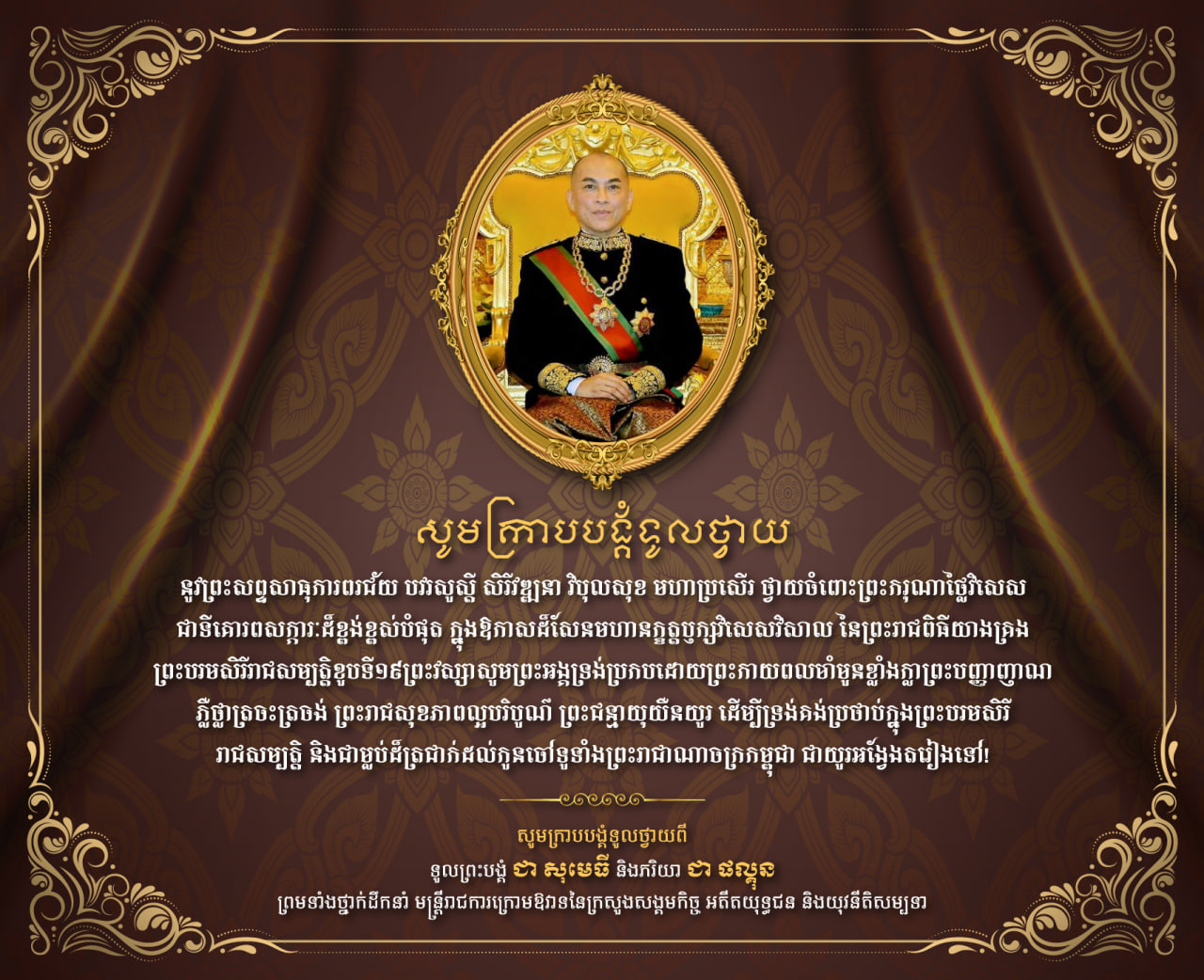 • ឯកឧត្តមរដ្ឋមន្ត្រី ជា សុមេធី ថ្វាយសារលិខិតបង្គំទូលថ្វាយ ព្រះករុណាព្រះបាទសម្តេចព្រះបរមនាថ នរោត្តម សីហមុនី ក្នុងព្រះរាជពិធីគ្រងព្រះបរមសិរីរាជសម្បត្តិខួបទី ១៩ព្រះវស្សា
