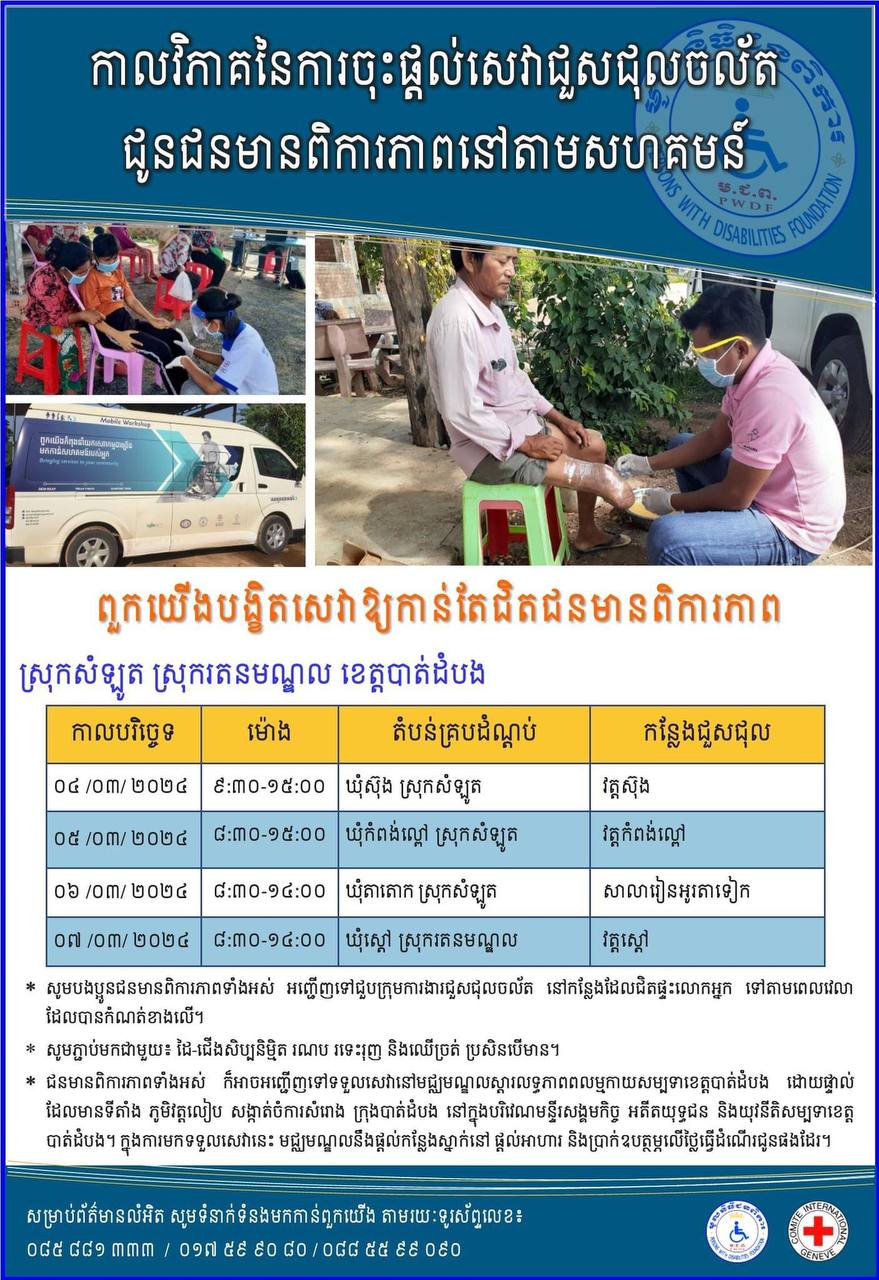 • កាលវិភាគផ្ដល់សេវាការជួសជុលអវយវៈសិប្បនិមិ្មត រណប និងឧបករណ៍ជំនួយជូនជនមានពិការភាពនៅខេត្តបាត់ដំបង