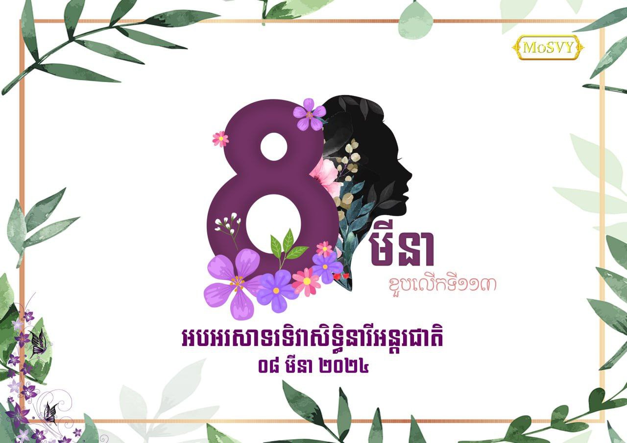 • អបអរសាទរ ទិវាអន្តរជាតិនារី ៨ មីនា ២០២៤ ខួបលើកទី១១៣ ក្រោមមូលបទ “ស្រ្តី និងក្មេងស្រី ក្នុងបរិវត្តកម្មឌីជីថល”